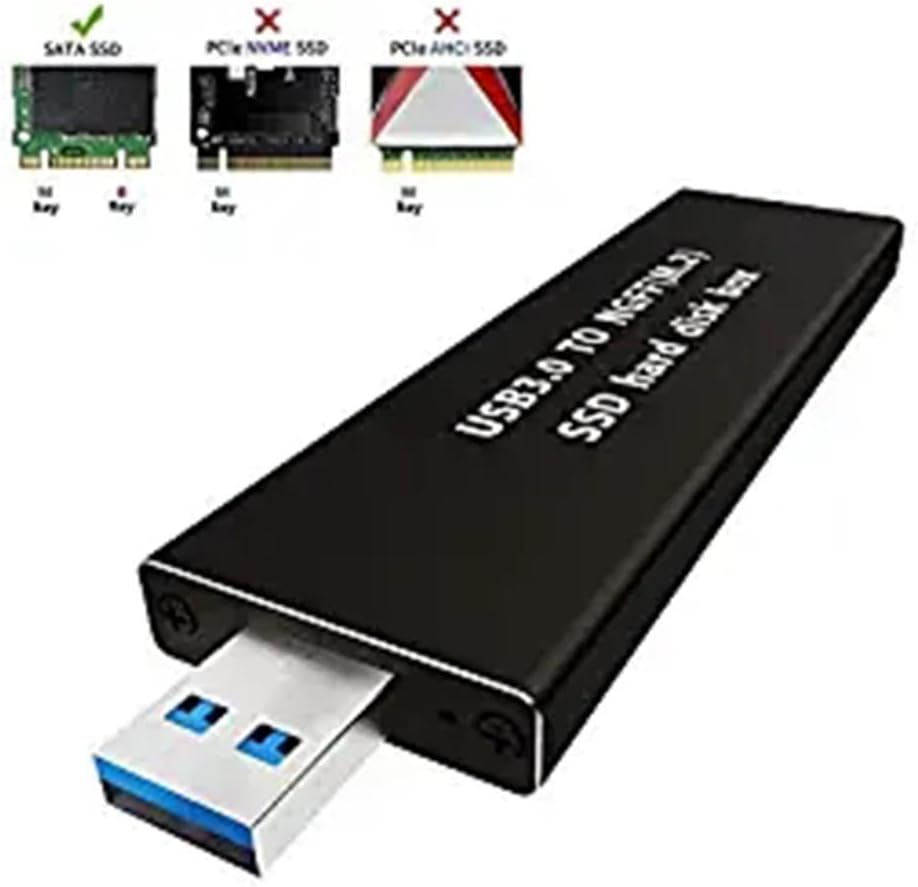 Description: - Easy installation & no driver required. - No additional power required. - Support boot function. - Plug & Play and Hot-Swapping. - Support System: Windows xp / Vista / Windows7 / 8 / 8.1 / Linux / Free drive with USB.Specification: - Connects NGFF B Key SSD safely to computer via USB port.Compliant with PCI M.2 specification 1.0.Compliant with SATA 3.0 specification.Compliant with USB 3.0 specification. - Transfer Rates Up to 5 Gbps when connected to a USB 3.0 port. - Transfer Rates Up to 480 Mbps when connected to a USB 2.0 port. - SATA-based B Key NGFF SSD. - Applicable SSD hard drive: support 22mm * 30mm / 42mm/60mm/80mm NGFF (M.2) Interface SSD hard drive.Package Includes:1pc USB 3.0 to NGFF M.2 B Key SSD Adapter with 1pc box(SSD card is not included)