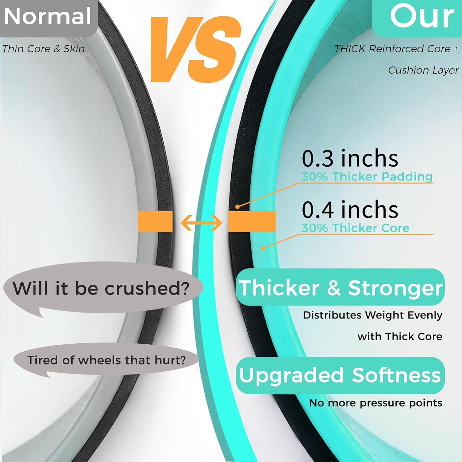 NAME: Strong & Comfortable yoga wheel (13inch*5.1inch)(6inch*3.9inch) IMPROVE YOUR YOGA: Considered to be the BEST back opener & stretcher you could have, this yoga wheel will open you up to new sequences & forms. STRONGEST WHEEL ON THE MARKET: Able to withstand a WHOPPING 500lbs! Lower quality yoga wheels are made of PVC – which is not safe or durable! This reliable yoga wheel is made to last! helping you perform all movements and poses with ease, safety, and much needed support. ULTIMATE COMFORT: Surpassing competitive products in both quality and thickness, NGT Yoga Wheel features the THICKEST PADDING available, which cushions your palms, feet, and back while in motion, providing a remarkable sense of comfort. SWEAT-RESISTANT: Free of moisture accumulation, thanks to its superior padding, you can use your new prop during the most demanding of yoga sessions! Thanks to its sweat-resistance, our yoga wheel does not retain those musky perspiration scents.
