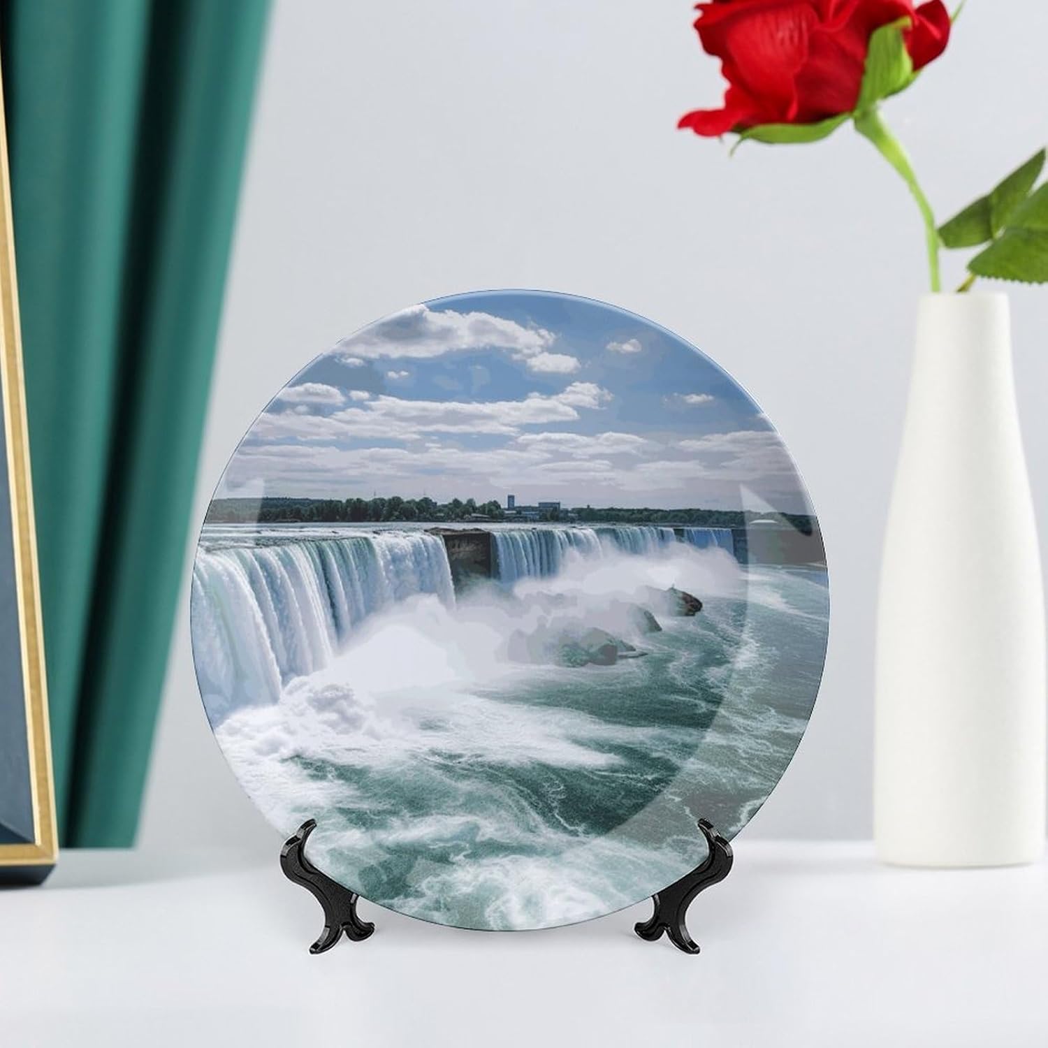 Our versatile ceramic Niagara Falls plates are made of smooth ceramic material. The lightweight bone china plates can be easily placed anywhere you like, showcasing their decorative charm.This bone china dessert plate is available in four sizes: 6 inches, 7 inches, 8 inches, and 10 inches, making it an ideal choice for display items.Personalized decorative plates, perfect for displaying handicrafts, are an ideal choice for home décor. This vertical ceramic plate makes a wonderful gift for housewarmings, anniversaries, weddings, birthdays, Thanksgiving, New Year's, or any holiday.This French country-style ceramic plate is suitable for decorating or using in living rooms, offices, hallways, dining rooms, entrances, hotels, holiday homes, and other places.