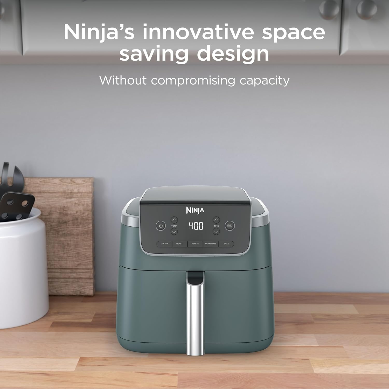 Meet the Ninja® Air Fryer Pro, a fast and easy way to get the perfect crisp with up to 400F of heat. Air Crisp Technology surrounds your favorite foods with superheated air for hot, crispy results. With 5 QT capacity, cook up to 4 lbs of fries using little to no oil and enjoy your favorite foods guilt-free. With Air Fry, Bake, Roast, Reheat, and Dehydrate, the options are endless. 5 cooking functions lets you satisfy any craving, from crispy snacks to full meals. Then, cleanup is a breeze with a nonstick basket and crisper plate.