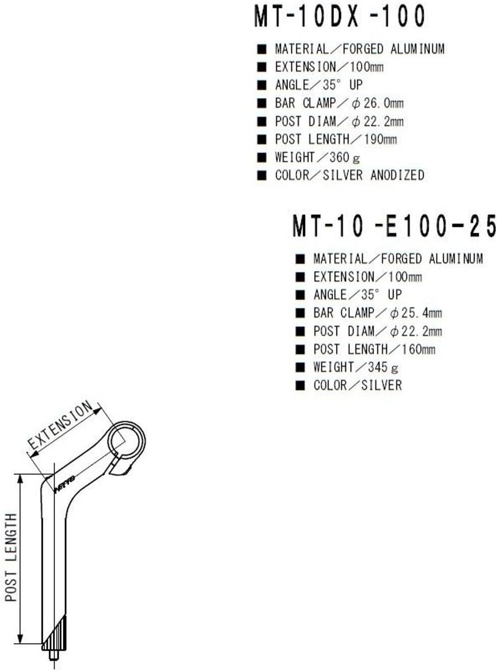 Enhance your MTB riding experience with the Nitto MT-10 Long Quill Stem - a perfect blend of durability, performance, and classic style. Designed for riders seeking a more upright and comfortable position, this stem offers exceptional engineering and innovative features to elevate your mountain biking adventures. Materials & Construction: Crafted from forged aluminum alloy, the Nitto MT-10 Quill Stem ensures lightweight strength and long-lasting durability. Its precise machining guarantees a secure fit and reliable performance in demanding trail conditions. The silver finish provides a sleek, timeless look that complements a wide range of mountain bike designs. Performance & Engineering: Featuring a generous 35-degree rise, this stem positions your handlebars for an upright riding stance, enhancing control and comfort during technical climbs or extended rides. The 225mm tall quill (with 210mm above the minimum insertion line) allows for versatile handlebar positioning, optimizing your bike's fit for personalized comfort and improved handling. Components & Technology: Compatible with 25.4mm bar diameter and 1" threaded steerers, the Nitto MT-10 long quill stem is engineered for seamless integration with various MTB setups. Its robust forged aluminum construction delivers reliable strength, while the 385-415g weight range balances durability with lightweight performance. Style & Use Case: Ideal for mountain bikers seeking adjustable, ergonomic handlebar positioning, the Nitto MT-10 Quill Stem is perfect for trail riding, cross-country adventures, or customizing your MTB for added comfort. Its classic silver aesthetic complements modern and vintage mountain bikes alike, making it a versatile choice for cycling enthusiasts. Innovative & Differentiating Features: Distinctively designed with a long quill and +35 rise, the Nitto MT-10 offers unparalleled adjustability for a personalized riding posture. Its forged aluminum build and precise engineering make it