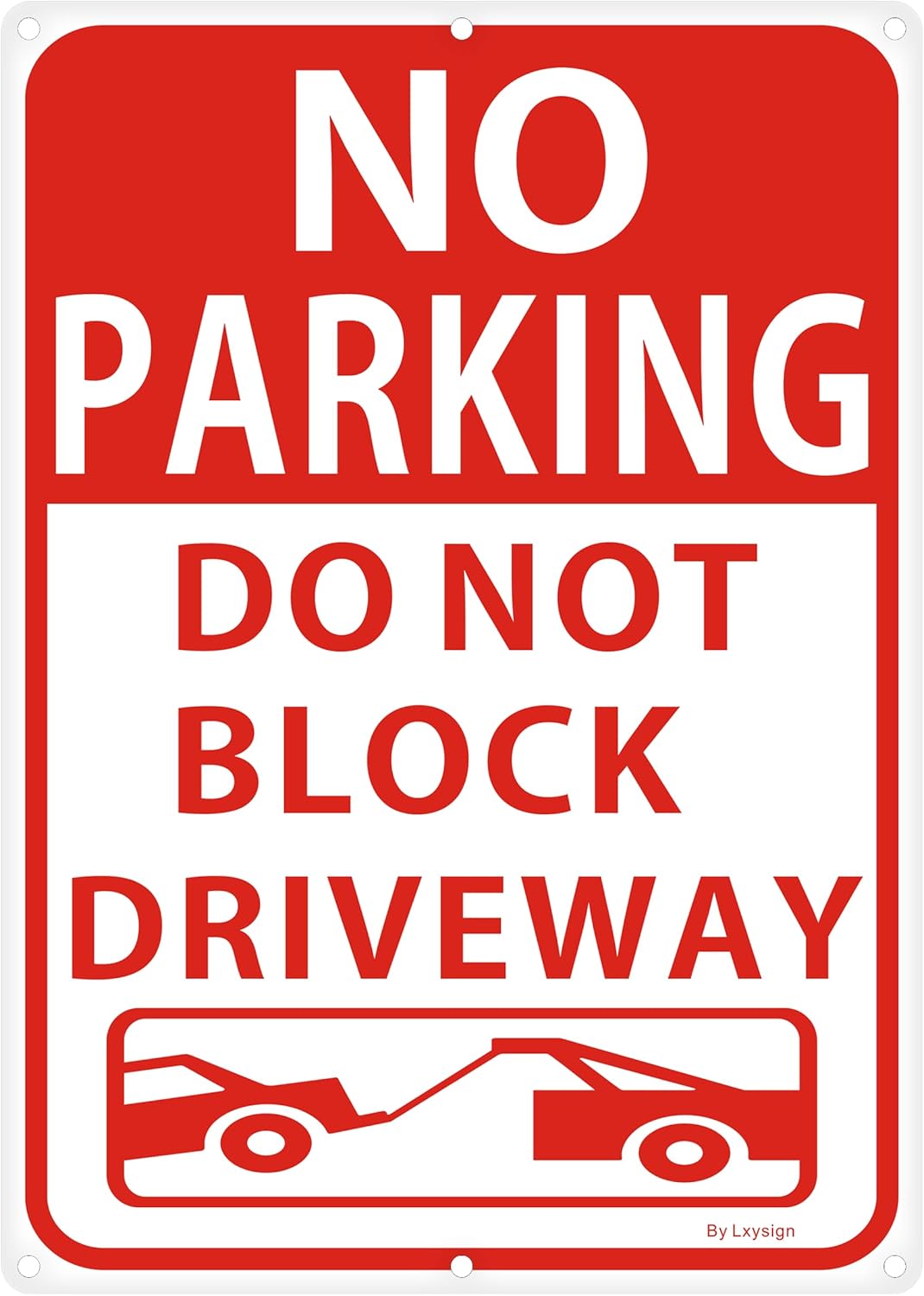 Make your property boundaries clear with these professional-grade No Parking signs from Lxysign. Each pack includes two durable 10 x 14 inch signs made of reflective aluminum, perfect for maintaining clear access to your driveway. The signs come complete with 36-inch metal stakes for secure installation and all necessary mounting hardware. The high-grade reflective surface ensures excellent visibility both day and night, while the weather-resistant construction stands up to harsh outdoor conditions. The bold red and white design features clear 'NO PARKING' and 'DO NOT BLOCK DRIVEWAY' messages with a universal no-parking symbol that effectively communicates parking restrictions. These rust-proof signs are built to last and maintain their appearance through years of outdoor exposure. The included stakes allow for quick and straightforward installation, making these signs an ideal solution for residential driveways, commercial properties, or any location where unauthorized parking needs to be prevented.