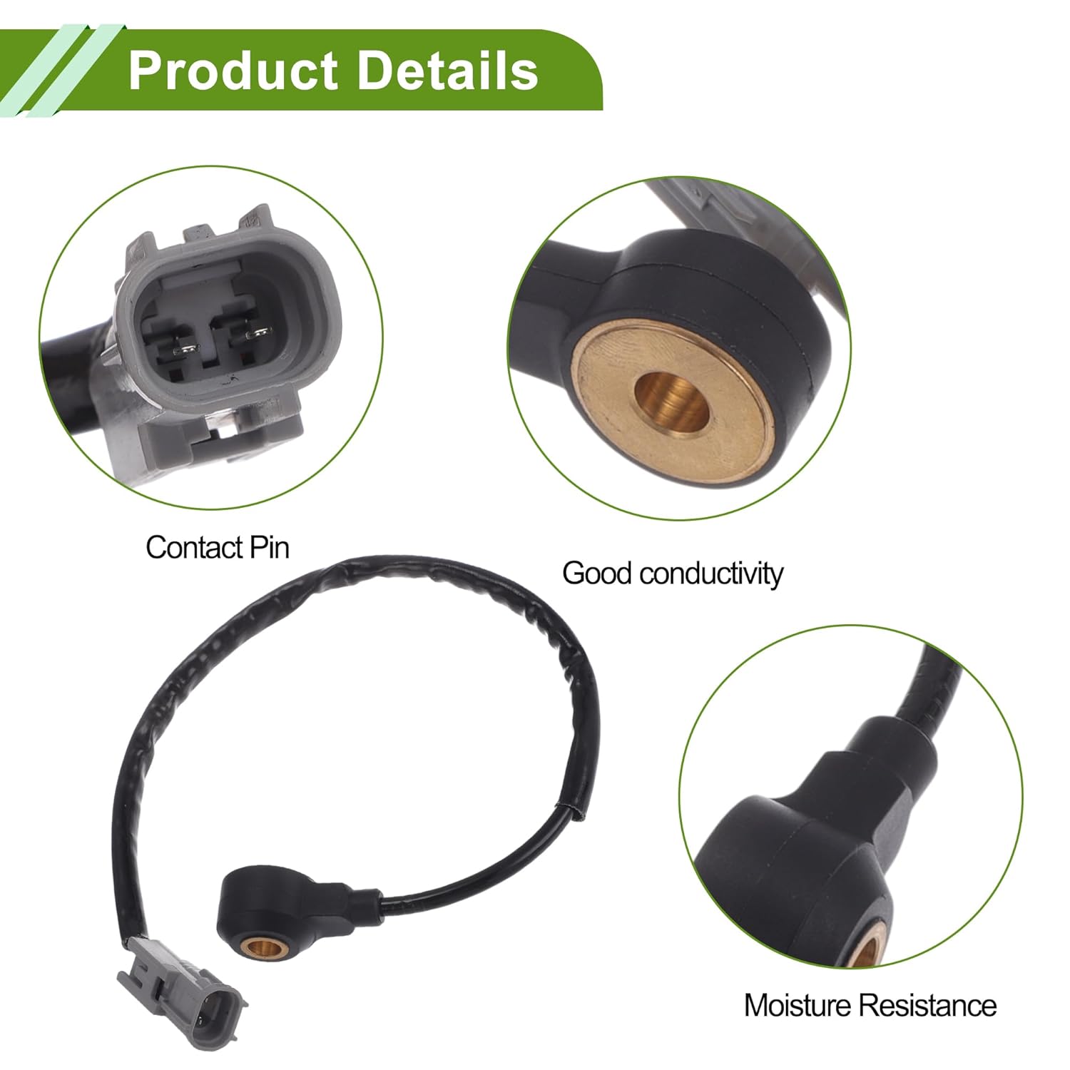 Material: Sensor and wire make of durable material, which is resistant to high temperature, vibration and wire corrosion for a long time lifeExcellent Performance:This product offers excellent performance and is a perfect replacement for old or damaged productsFunction: Replace the new knock sensor ensures accurate detection of engine knock, allowing the to optimize ignition timing and fuel supply.New sensor leads to smoother acceleration and better overall engine responsivenessInstallation : Easy to install and replace the broken Knock Sensor, no special tools neededWarm Tips:Please make sure the OE number matches the part you want to replace, if you are not sure, please feel free to contact us