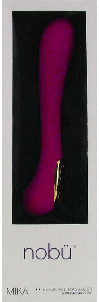The Mika Nobu Personal Vibrator by BodiSpa features an exclusive sound-sensitive "sound response system" which increases vibration intensity as ambient sound/music is detected by built-in sensor during use. It has a soft, silky, seamless fnish on the shaft. It is lightweight and splashproof. It is rechargeable via USB connection or A/C power supply. It is rechargeable via USB connection or A/C power supply.
