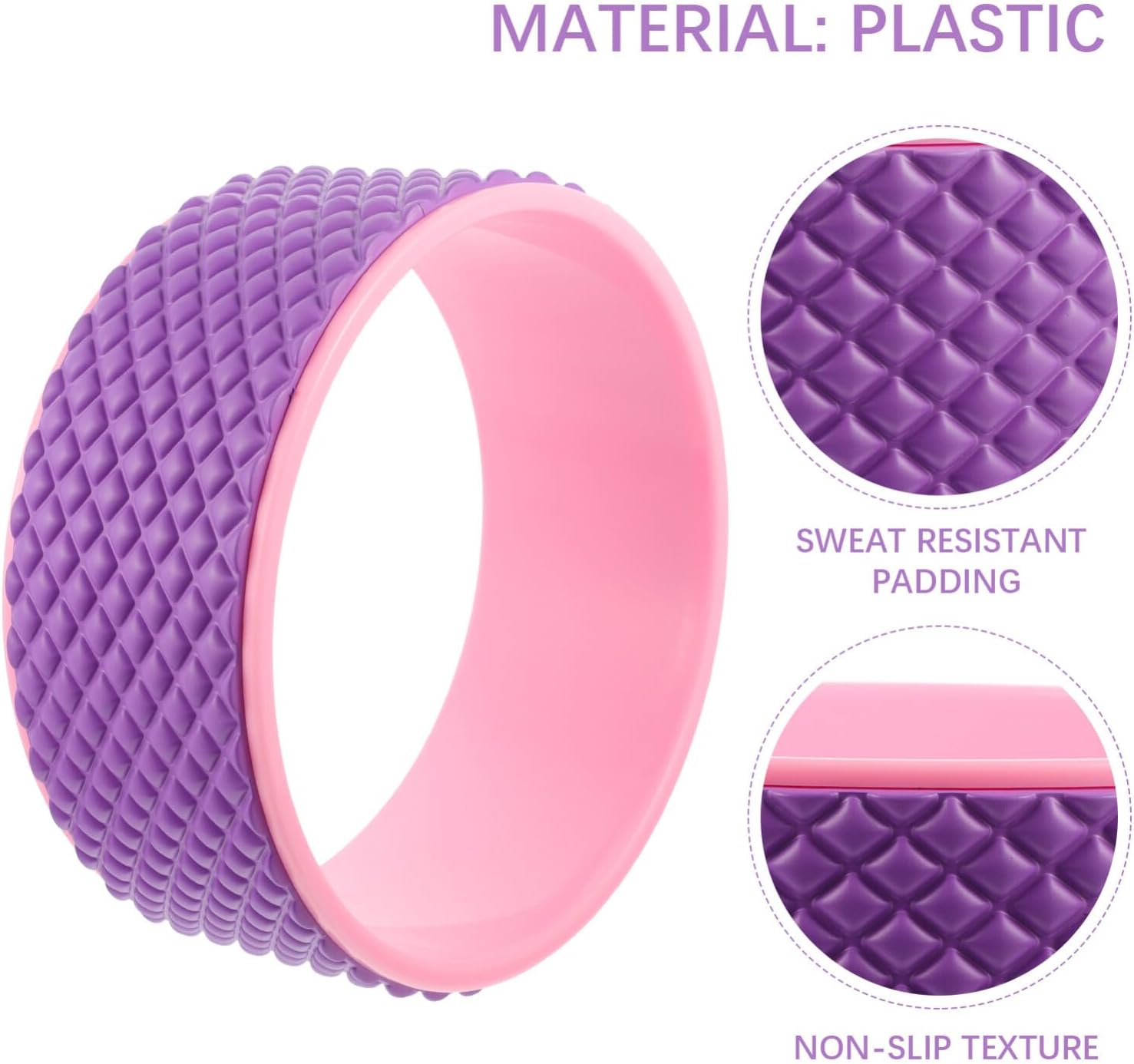 DescriptionOur yoga wheel is a must if you are looking for a yoga wheel. It is made of plastic. It is finest and durable. It can be used to effectively enhance your yoga poses. Suitable for both and home use.Features- ENHANCE YOUR BACKBENDING PRACTICE: Enhance your yoga and with our Yoga Wheel Backbend Tool. Designed for beginners, this tool helps improve flexibility, balance and strength, especially in backbend poses.- 3D MASSAGE ROLLERS: This wheel features unique 3D massage rollers that provide a deep tissue massage effect to relieve muscle tension and promote relaxation after a workout or long day.- IDEAL FOR OPENING YOUR BACK: Use this wheel to safely and effectively open your back, shoulders and chest. It supports proper alignment and promotes a healthy spine, making it an invaluable tool for improving posture.- MULTIFUNCTIONAL EXERCISE: Whether you practice yoga, Pilates or another form of exercise, this wheel is a versatile accessory that will enhance your workout. Use it for stretching, balance training and core strengthening exercises.- FINEST CONSTRUCTION: This yoga wheel backbend tool is made of durable material for use. Its sturdy design can support up to [insert weight limit], making it suitable for users of all sizes.- Color: Pink Purple.- Material: Plastic.- Size: Approx. 30.00X30.00X12.00cm/11.79X11.79X4.72in.- Color: Assorted Color.- Size: 30X30X12cm.Package Including1 x Yoga Wheel
