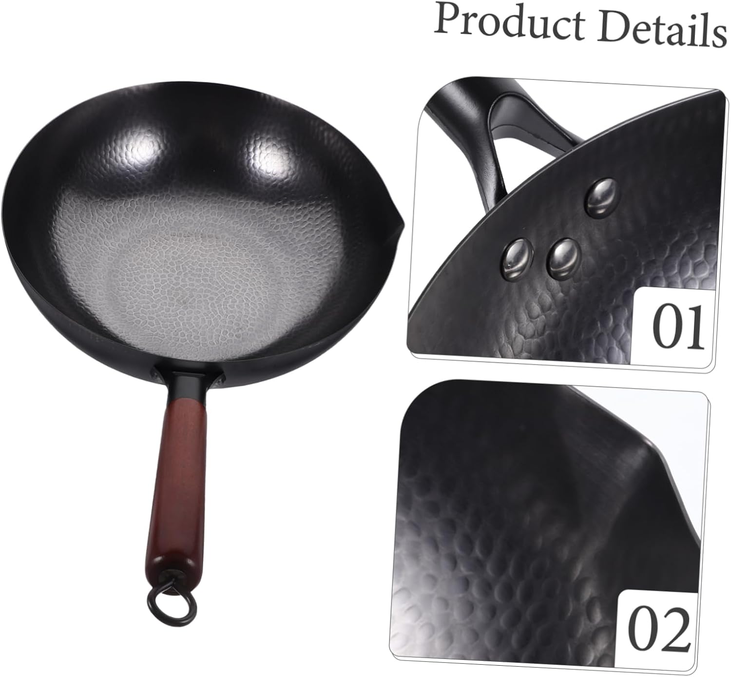 Package List 1 x Chinese style wok pan Features -Size:54.50X32.70X9.60cm/21.42X12.85X3.77in pan nonstick -Material:Wrought iron, wood nonstick frying pan -Color:Black nonstick wok - The wooden handle makes you feel comfortable, which also can be heat insulation and heat proof wok pot. - Easy and effortless when holding the pan, even ladies can hold the pan and start frying non stick deep frying pans. - The frying wok pan is simple , but very practical in use, which brings great convenience to you wok pan nonstick. - The ergonomic handle design, saving your in carrying and storage non-stick wok pan. - Simple and delicate, excellent and reliable, carefully crafted, not easy to deform or break due to the high hardness fry pan nonstick.Goods Informationnonstick wok This frying wok pan is made of reliable material, which can withstand use.stir-fry pans This frying wok pan will make the cooking easier and smoother.wok stir-fry pan Fine workmanship, practicality.wok pan with wood handle Features the strong material, which has high durability, not easy to deform