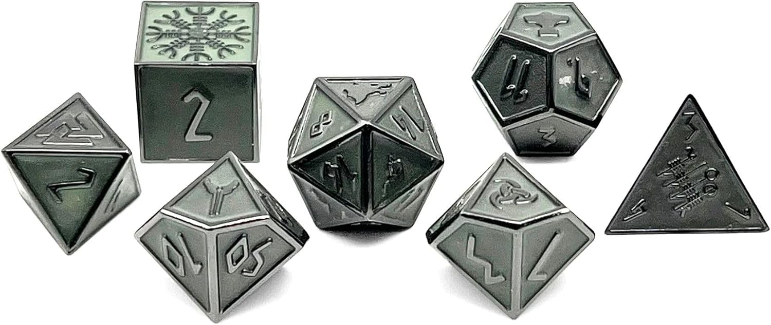 Initiate Unmatched Zenith: Begin upon an odyssey into the realm of doppelgängers with our exclusive "Runes of Power" dice set. Crafted from solid zinc alloy, these silver-plated dice with enchanting purple enamel filling mirror the essence of the mysterious, shape-shifting creatures that inspired them. Commence Unparalleled Pinnacle, Unforeseeable Rolls: Drown yourself in the artistry of dice design with our meticulously crafted dungeon-crawling set. Boasting a unique FULL METAL construction, these dice, weighing up to 50% more than ordinary counterparts, promise truly random rolls and guarantee an immersive gaming experience. Exemplary Quality, Unforgettable Gameplay: Norse Foundry's RPG dice are a testament to sophistication and quality. With sharp corners for optimal balance and engraved, painted, and centered numbers, these dice prioritize readability. Sized larger than industry standards, the set averages at 18mm, with a formidable d20 of 20mm, providing a tactile and weighty feel in your hands. Uplift Your Gaming Experience: Just as doppelgängers can be strategic allies, our dice set becomes an indispensable companion in your gaming journey. The charming silver-plated design and durable construction embody the spirit of Norse Foundry's commitment to delivering exceptional and unique products since 2011. Norse Foundry: Crafting Epics Since 2011: Indulge in the pinnacle of dice craftsmanship with Norse Foundry – a brand synonymous with unparalleled artistry and a dedication to the nuanced art of dice-making. Our journey, which commenced in 2011, continues to redefine design and balance, bringing forth dice sets that stand out amidst the tapestry of your gaming adventures.