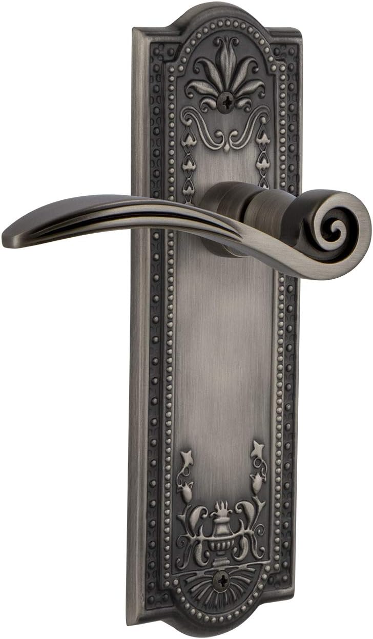 The Meadows Plate, with its intricate beaded detailing and botanical flourishes, creates an inspired design theme. Add the spiraling plume of the Swan lever to convey classic beauty from a golden age. All Nostalgic Warehouse door knobs are mounted on a solid (not plated) forged brass base for durability and beauty.