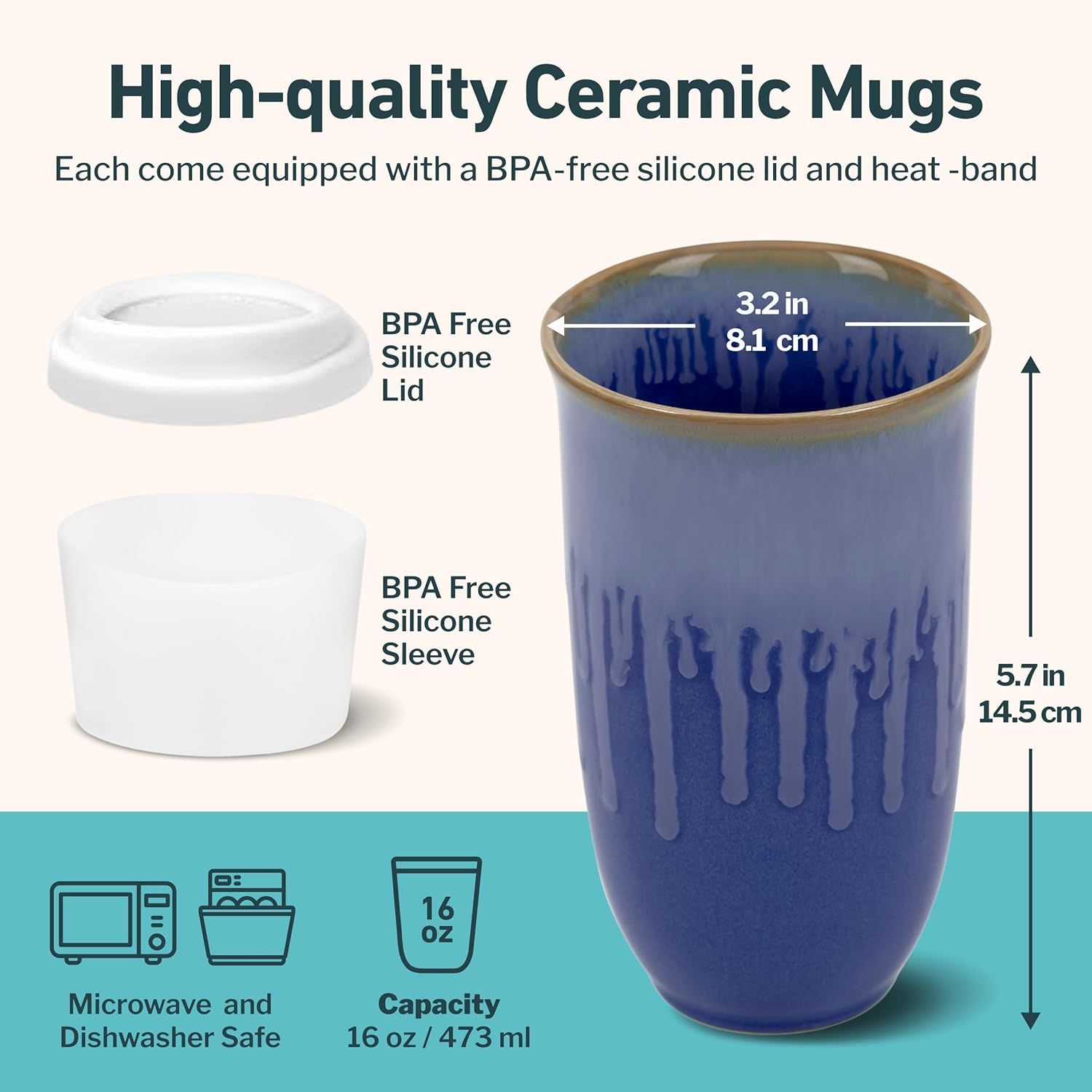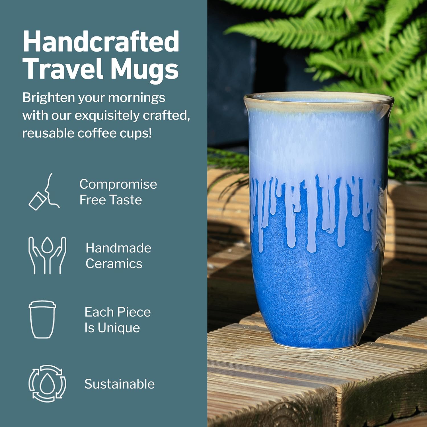 Introducing the Nova Ceramics Travel Mug the perfect accessory to make tumbler mug you can enjoy your insulated coffee tumbler coffee just the way you like it without any compromises in taste. Our ceramic coffee mug with lid replicates the coffee shop feel preserving the flavor of your favorite tea drinks without any stainless steel or plastic undertones. With a travel coffee mug capacity of 16oz and handle dimensions of 5.7 x 3.2 inches they fit perfectly in most coffee ceramic machines and car cup holders. What’s more each 16 oz tumbler is unique and has its own individual detailing making them one-of-a-kind coffee tumblers with lids. You don’t have to worry about maintenance either because our tumblers are dishwasher safe and microwave friendly. Embrace a more sustainable lifestyle and reduce waste from single-use paper cups by taking the Nova Ceramics Travel Mug with you everywhere. With its reusable and eco-friendly form you’ll never have to go back to disposable cups again!