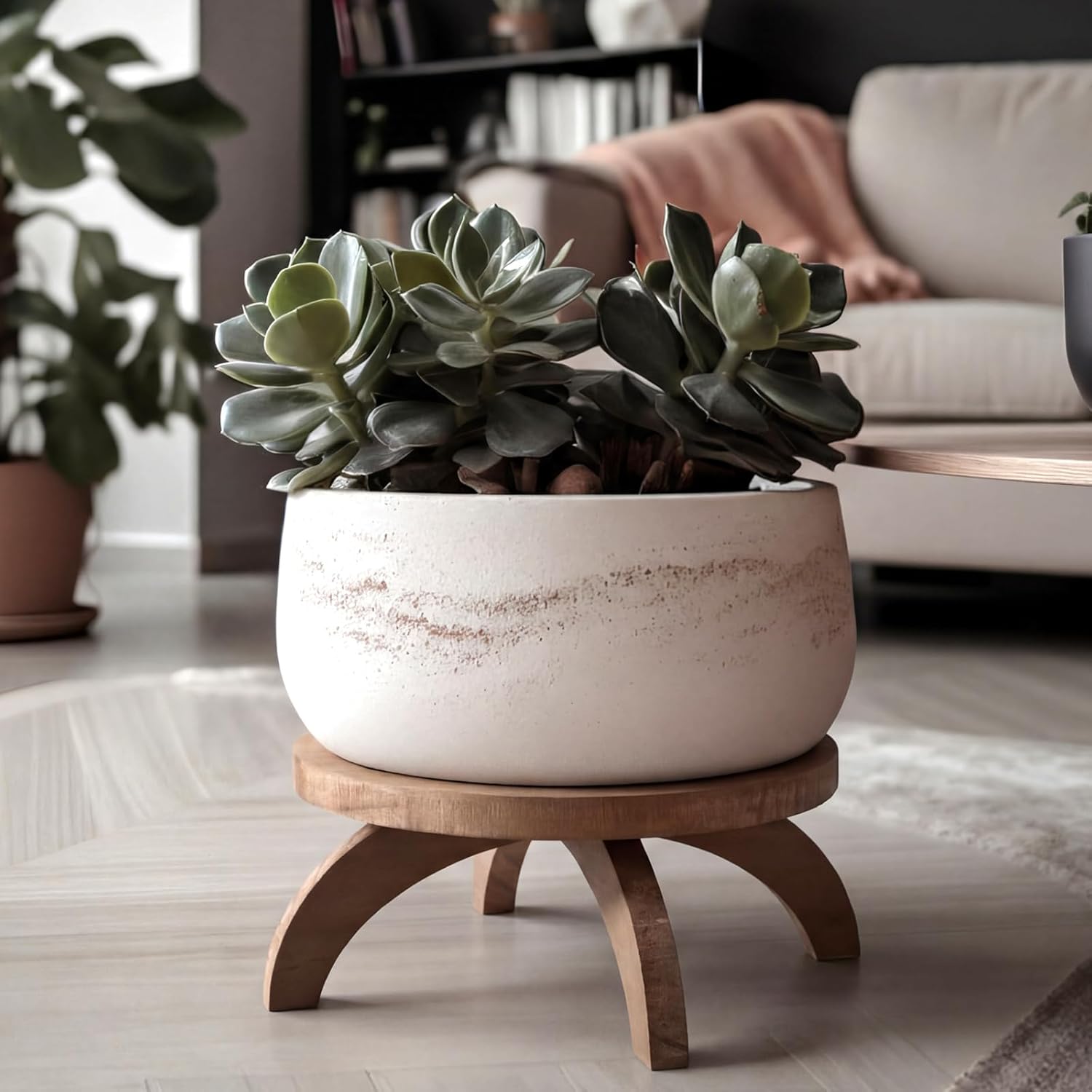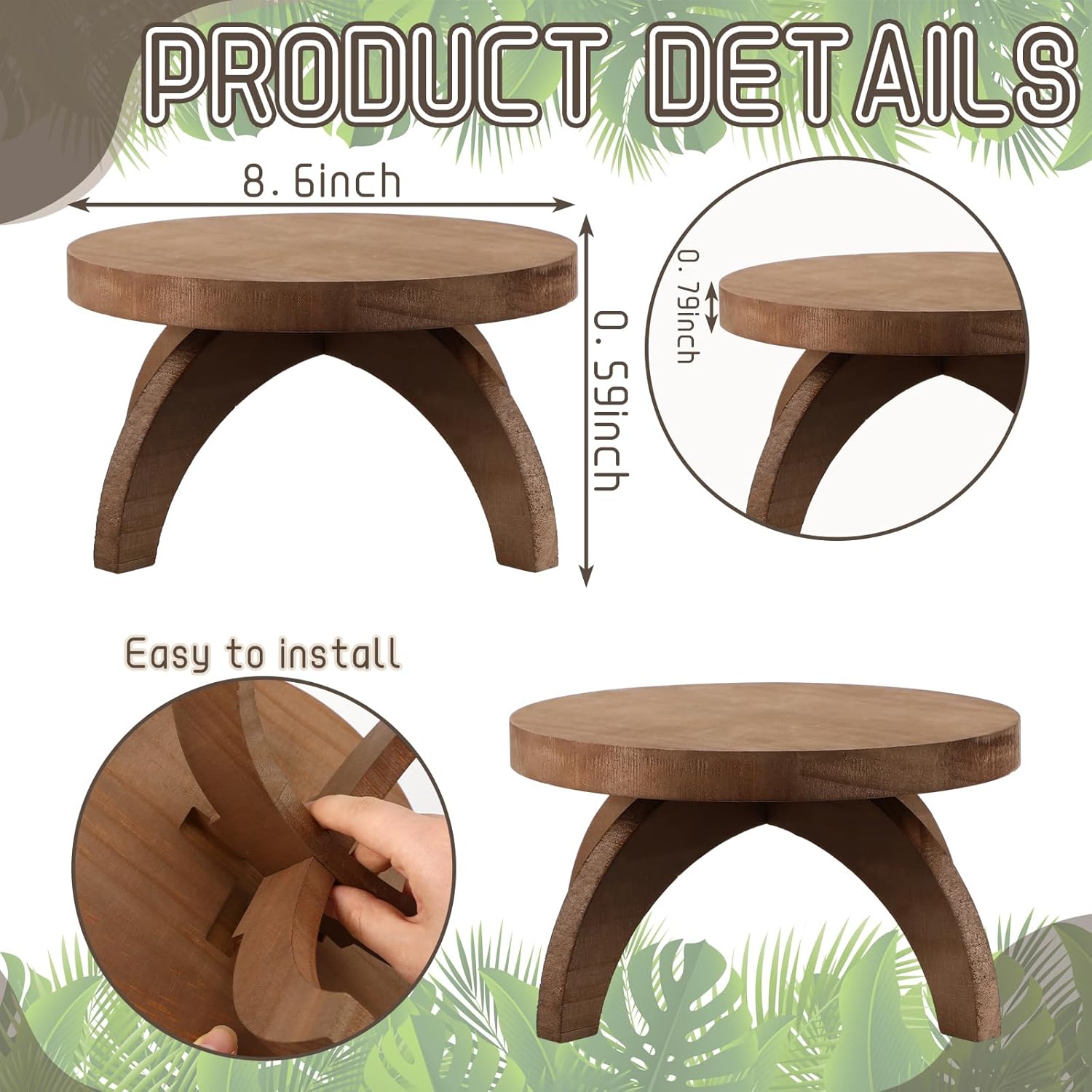 Features: Designed to be set directly on the ground, this plant stand safeguards your flooring from scratches and damage. Its sturdy construction supports your flora while keeping your floors pristine, clean for both indoor and outdoor settings. With two wooden pedestal stands in each package, you have double the opportunity to enhance your living space. Use them together for a cohesive look or separately to spread style throughout your home, offering versatile plant display options Specifications: Material: wood Color: wood color Size: measuring at 8.66 inches/ 22cm Package includes: 2 x Small plant stand Notes: Manual measurement, please allow slight errors on size. The color may exist a slight difference due to different screen displays