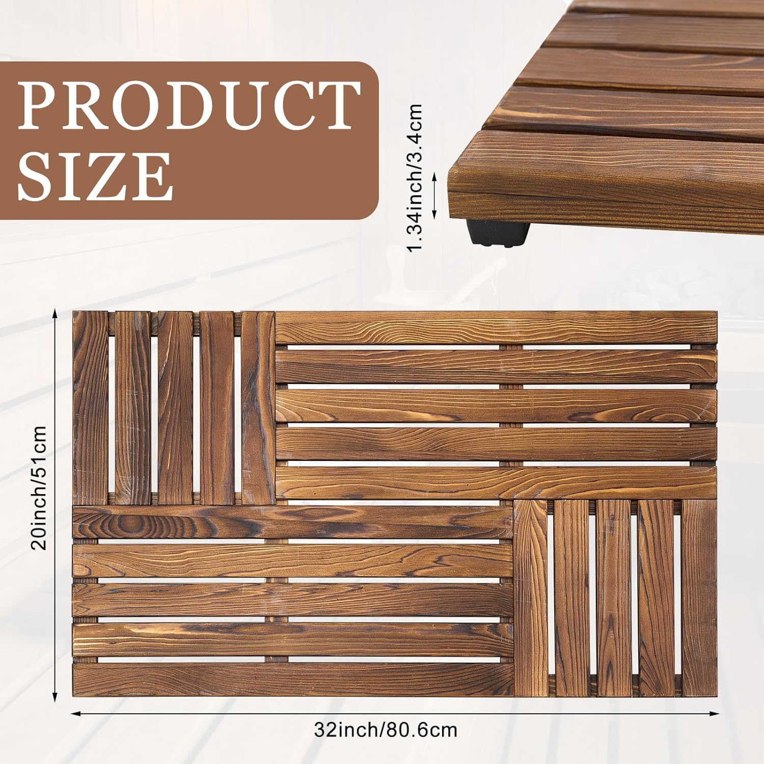 Features: This extra large sauna mat is suitable for wooden home saunas, premium sauna rooms, spas, and shower areas, bathtubs. This wooden platform for sauna room is burr-free with a smooth surface, and its gentle grooved wood grain ensures excellent breathability while providing a reliable anti-slip surface. Specifications: Material: pine wood Color: wood color Size: about 32 x 24 inch Package includes: 1 x extra large wooden sauna mat Notes: Manual measurement, please allow slight errors on size. The color may exist a slight difference due to different screen displays.