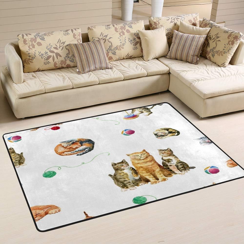 Made of environmental polyester material,high density space elastic cotton interlayer,soft touch.60 x 39 inch, 63 x 48 inch, 72 x 48 inch and 80 x 58 inch,4 sizes for your choose.Anti-slip bottom helps prevent it from sliding on your floor. Kids or pets can play very happily and comfortably on the area rug. Water absorption ,can't afford the ball, does not fade,Machine or hand washable, then put the rug in the ventilation to dry. Please do not expose it in the sun.Suitable for bedroom, living room, study, children's room, kindergarten, college dorm, etc.PS: The Area rug mats will be folded and shipped because the convenience of logistics and transportation, receive creases after receiving it and the creases will disappear after 3-5 hours. Please rest assured to buy!