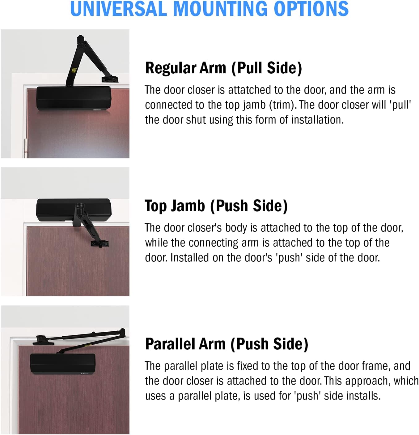 | Recommended Uses For Product | Commercial and residential interior/exterior doors, offices, schools, hospitals, homes |