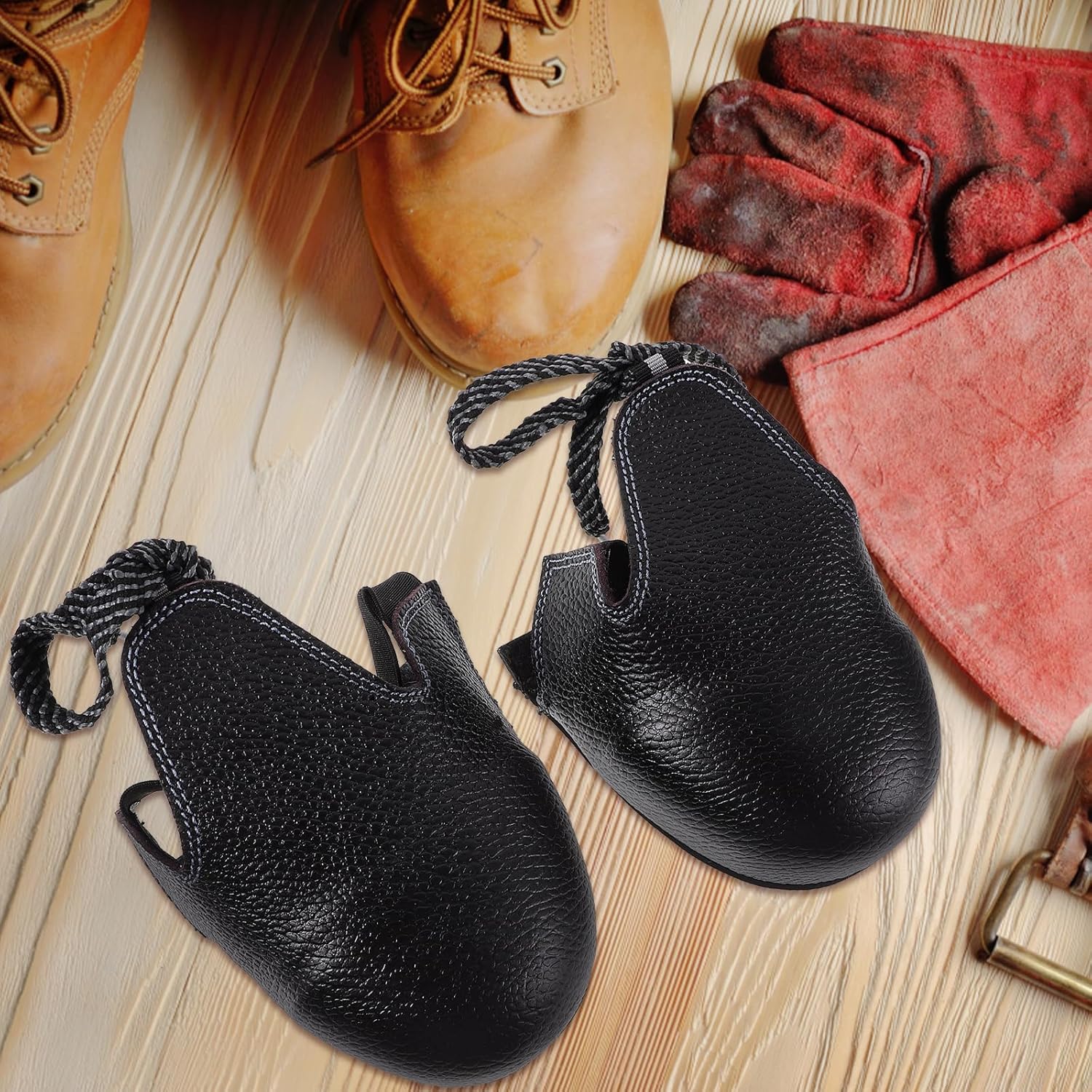 Steel Metal Toe Covers for Shoes Safety Overshoes with Adjustable Strap Non-Slip Steel Metal Toe Inserts Universal Labor Insurance Shoe Covers for Industry Workplace (Size EU 36-46) Product Introduction Color: Black.Material: Leather, steel.Size: 24.00X9.00X4.00CMSuitable shoe size: European 36-46.Note: shoelace has random color.Package Including3 Pairs Safety Shoe Covers