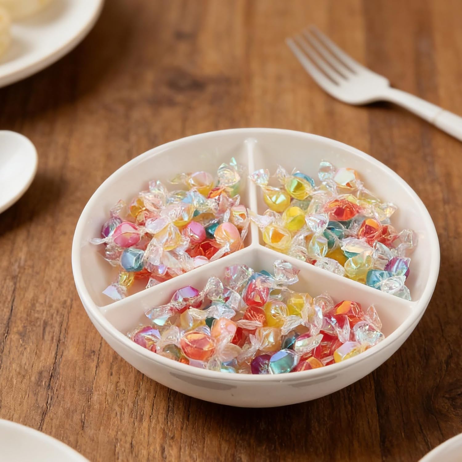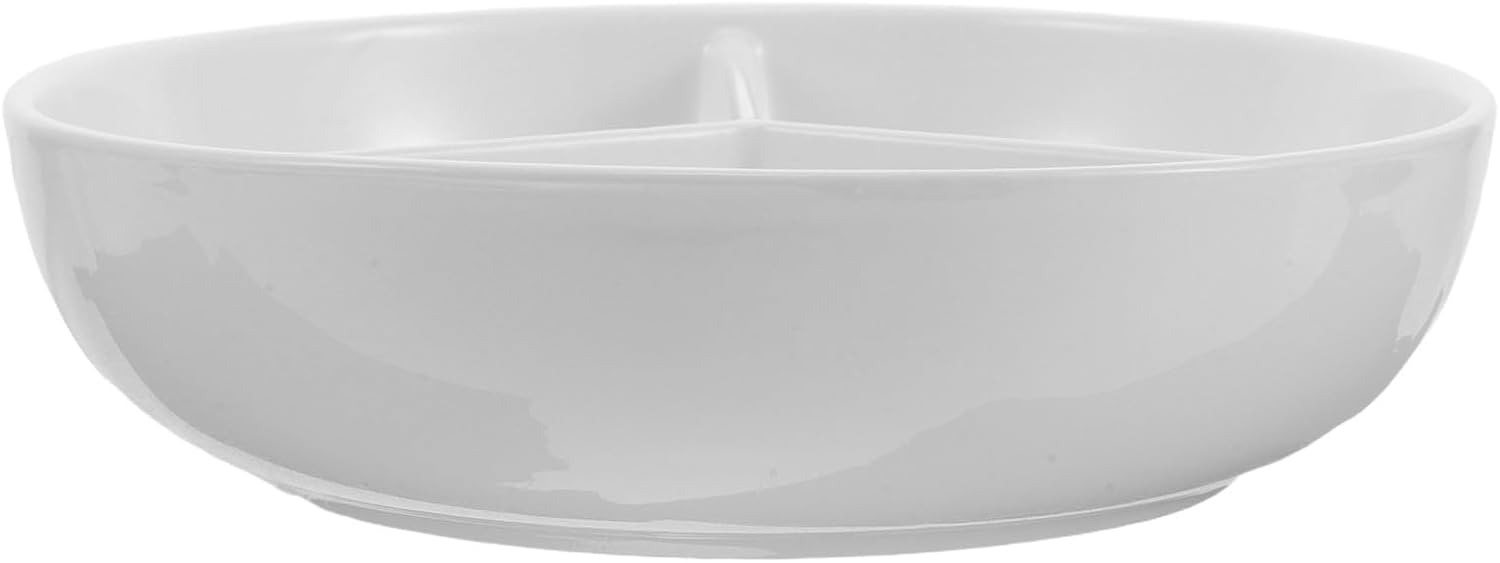 DescriptionThis ceramic cereal bowl features a unique three-section design that separates milk from cereal to keep your breakfast . Crafted in white ceramic, it offers a clean, minimalist for everyday use or special occasions. The divided tray is perfect for serving appetizers, snacks, or condiments without mixing flavors, making it a versatile addition to your kitchen.FeaturesMaterial: CeramicSize: 7.48 x 7.48 x 1.85 inches (19 x 19 x 4.7 cm)- Anti-soggy compartment: Designed to separate cereal from milk, this cereal soup bowl maintains texture and flavor, enhancing your breakfast routine.- Multi-use serving platter: Ideal for appetizers, dips, yogurt, or snacks like chips and candy, this portion control plate helps keep foods distinct and visually appealing.- Microwave and oven safe: Suitable for reheating or baking, this microwaveable bowl supports convenient meal prep and versatile serving options.- Portion control design: Helps manage serving sizes for healthier eating habits, suitable for meal prep or controlled snacking.- Japanese- : The elegant white porcelain bowl adds a decorative touch to your table, fitting well with sushi plates, dipping sauce cups, or party snack bowls.Perfect for family breakfasts, casual parties, or holiday gatherings, this ceramic microwave bowl with lid organizes food neatly while preserving flavors. Use it for serving soup, salad, or as a vinegar dish during entertaining. Its compact size and separate sections make it a practical choice for everyday use. Enhance your dining experience with this multifunctional ceramic bowl designed to meet varied serving needs.Package Including1 x Ceramic Cereal Bowl