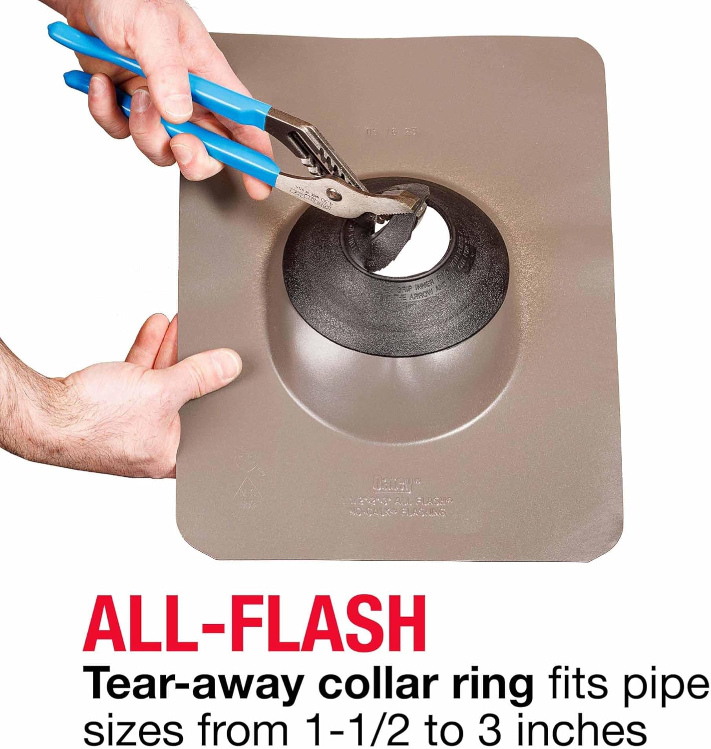 Oatey All-Flash No-Calk Roof Flashings/Copper Base features a self-sealing collar that slides over pipe in commercial and residential applications where a watertight seal for roof penetrations around the plumbing vent pipe is required.