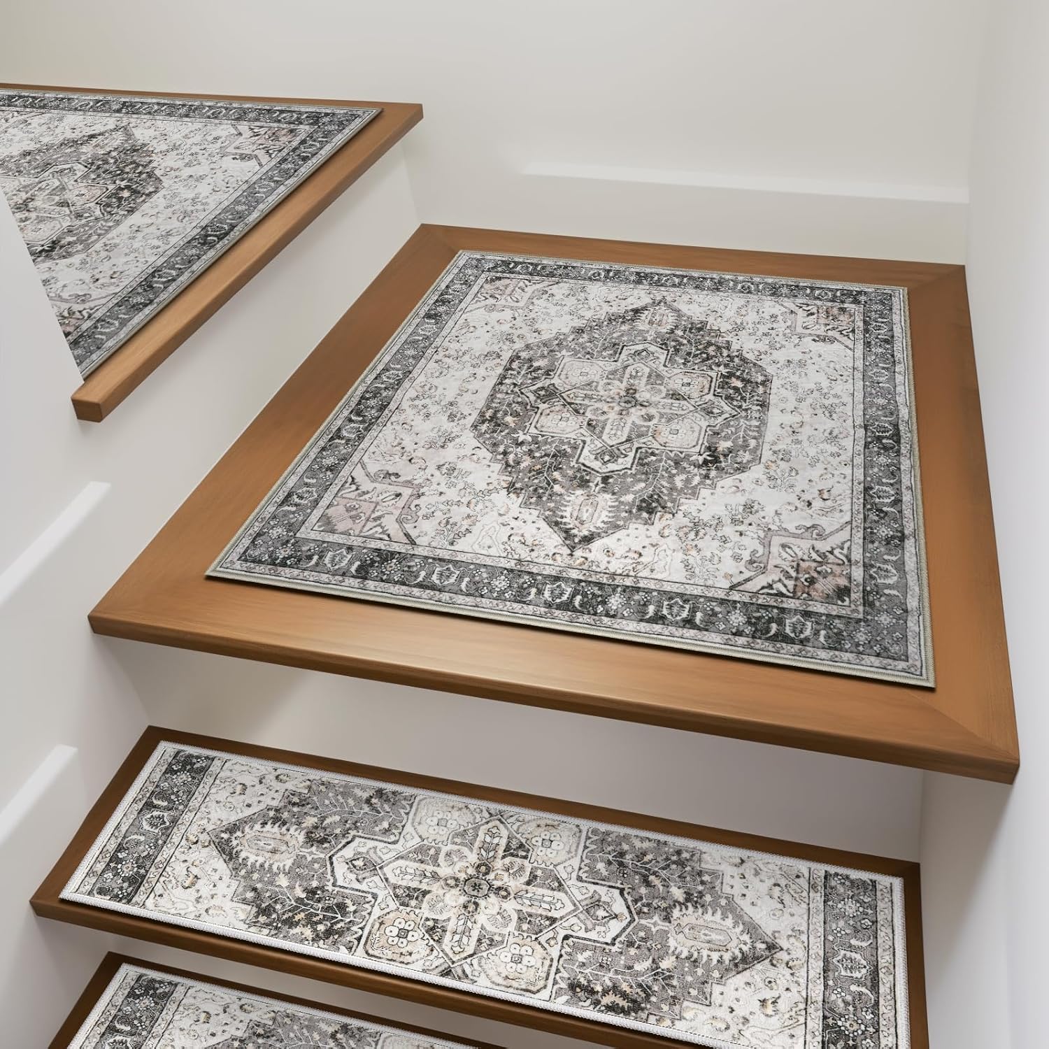 • Washable Stair Runner: The stair mats are easy to clean, you can use a rag to wipe clean or a vacuum to clean dust, scraps, and pet hair without worrying about fraying and fiber loss. For deeper cleaning, throw them in the washing machine