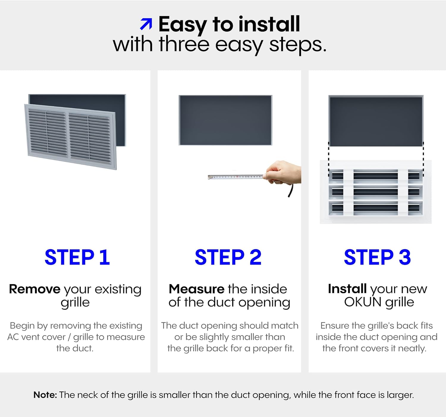 | Included Components | Grille, Installation Manual, Mounting Screws |