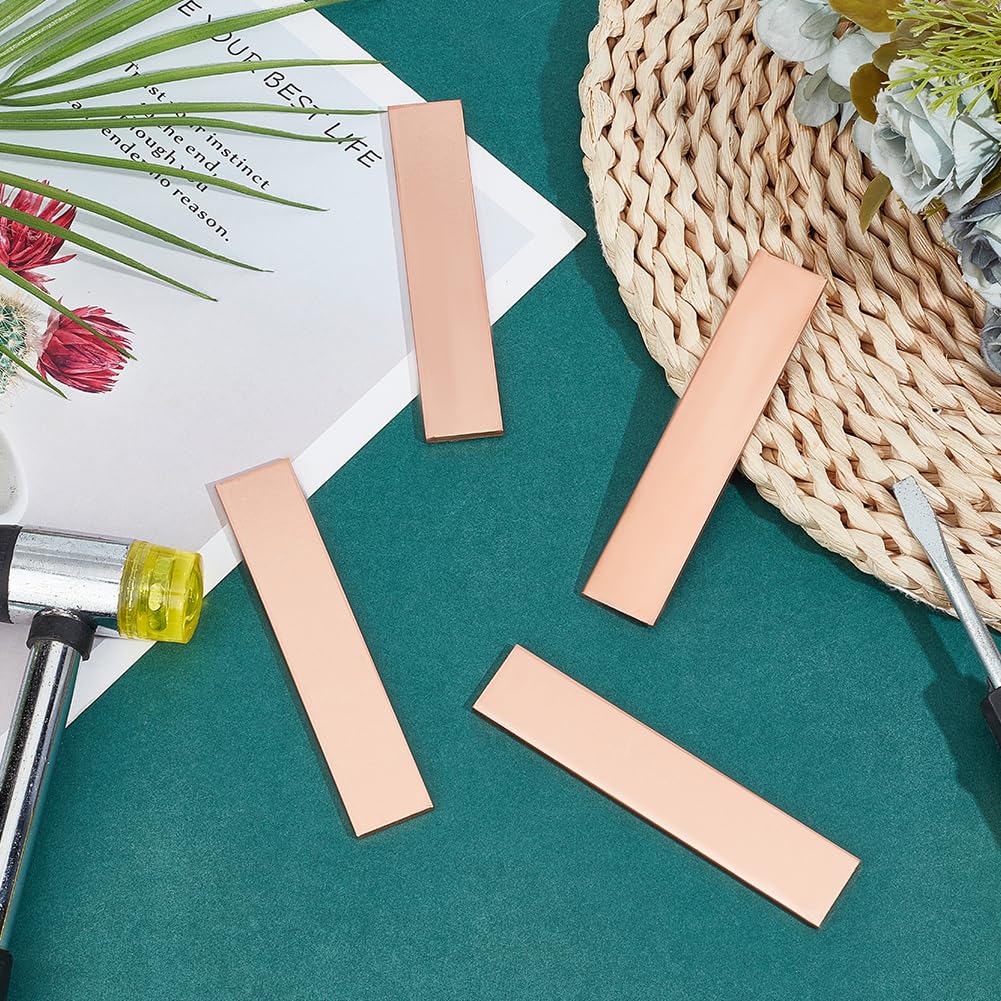 OLYCRAFT 4 Pcs Copper Flat Bar Straight Bar Color: Rose Gold Mterial: Copper Shape: Rectangle Size: about 20mm/0.8 inch wide, 100mm/4 inch long, 3mm/0.1 inch thick