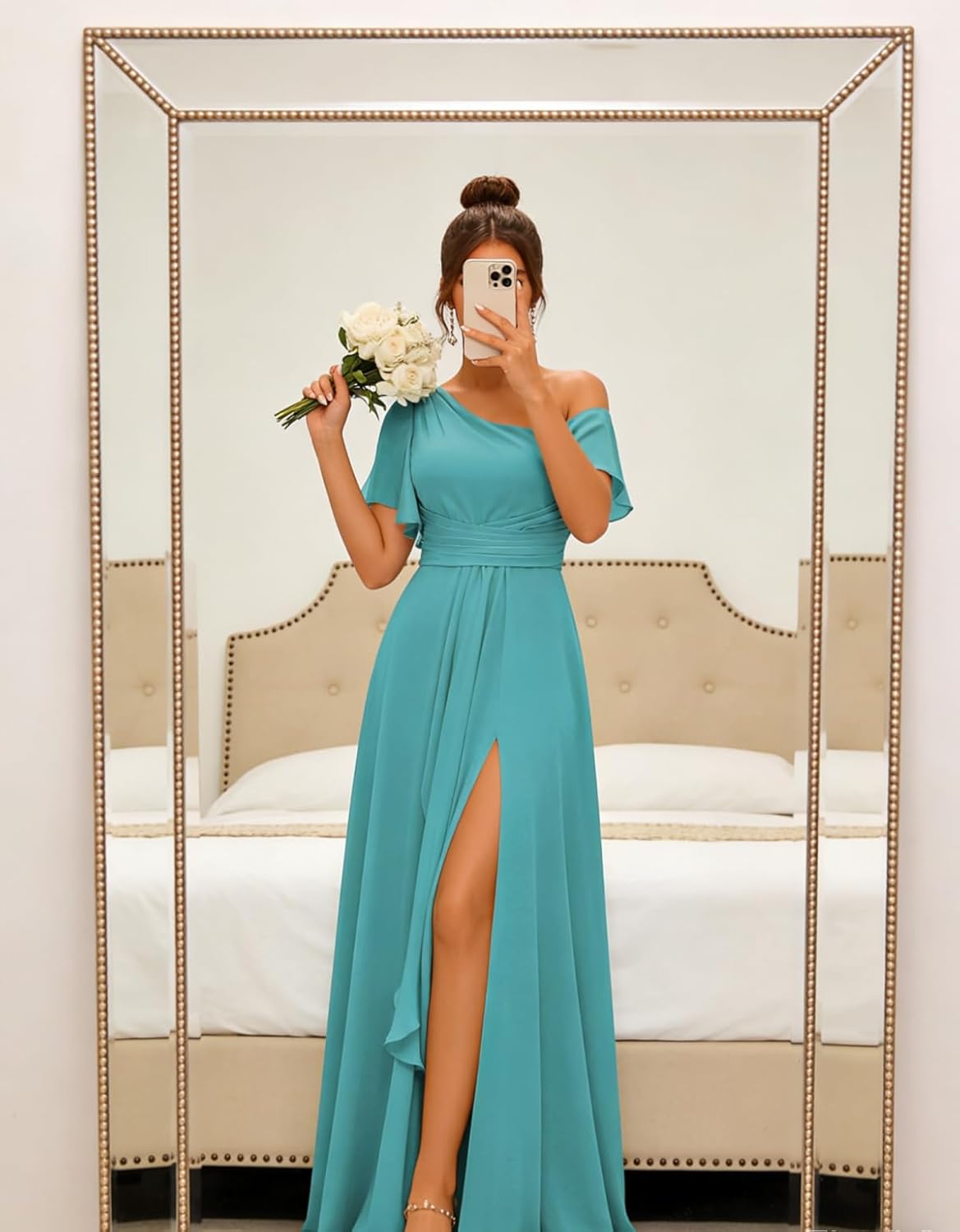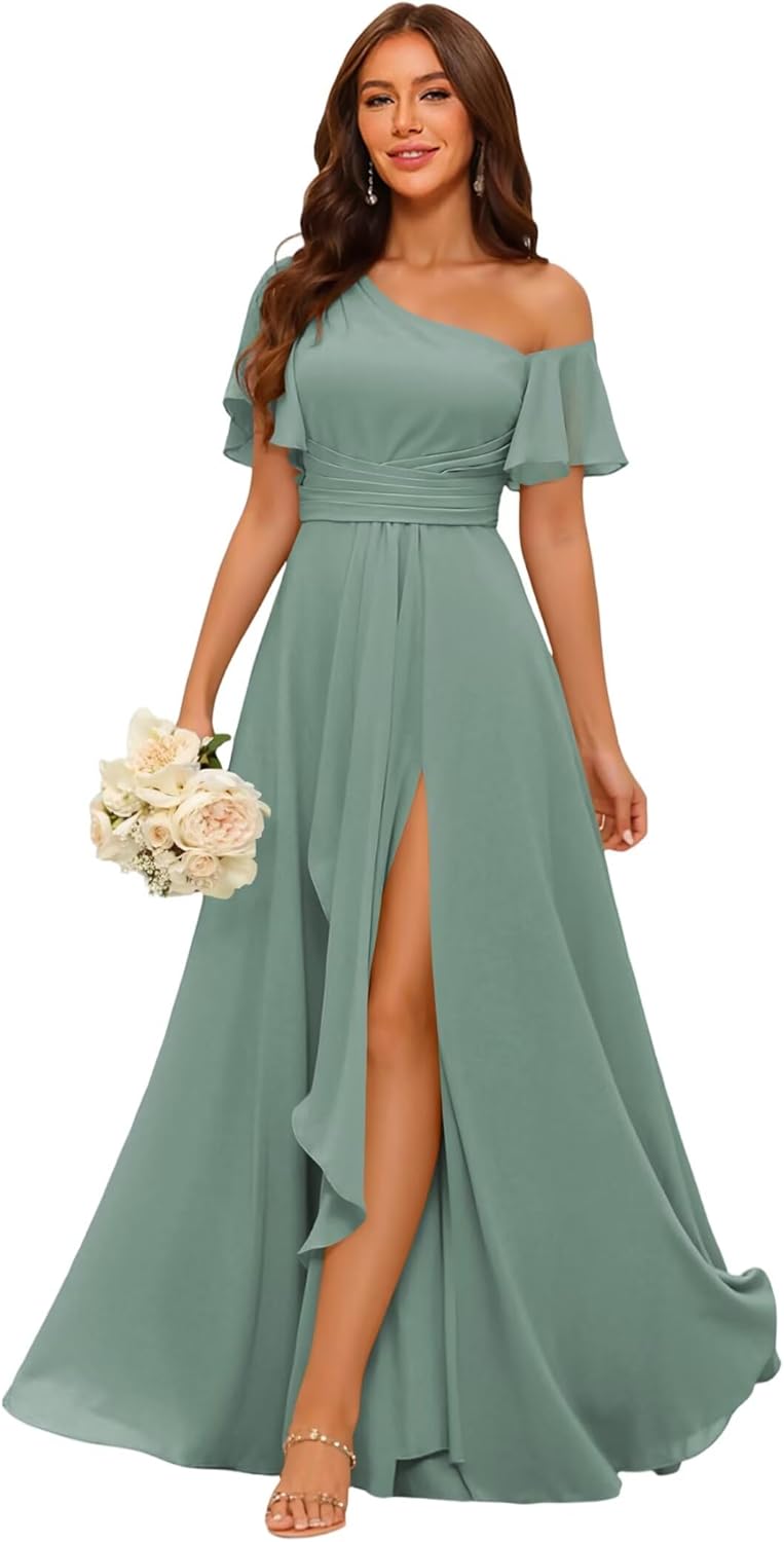 | Embellishment Feature | A Line, Floor Length, One Shoulder, Pleated, Short Sleeves |