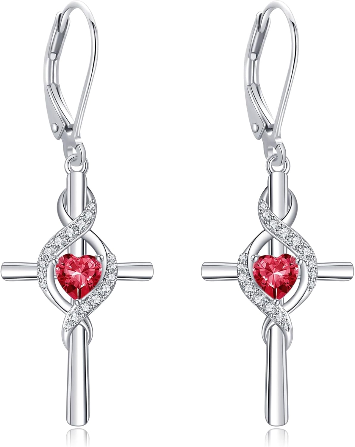 ONEFINITY Cross Earrings for Women 925 Sterling Silver Cross Birthstone Dangle Drop Earrings Infinity Cross Religious Jewelry Gifts for Women