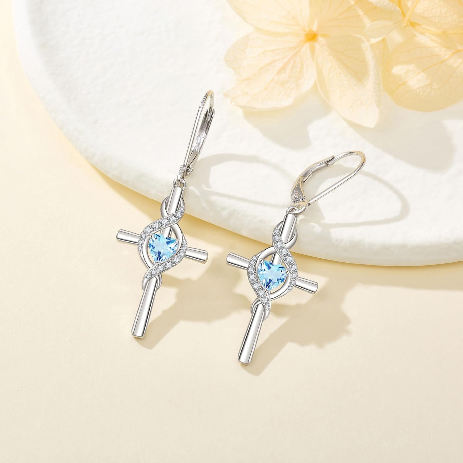 • ❤️ Design:Cross Earrings for Women: Wearing a Earrings featuring a cross is a symbol of faith,this dainty infinity cross earrings is designed for women and will bring unlimited faith, hope and love to the one you love.The cross earrings with birthstone is elegant and charming.