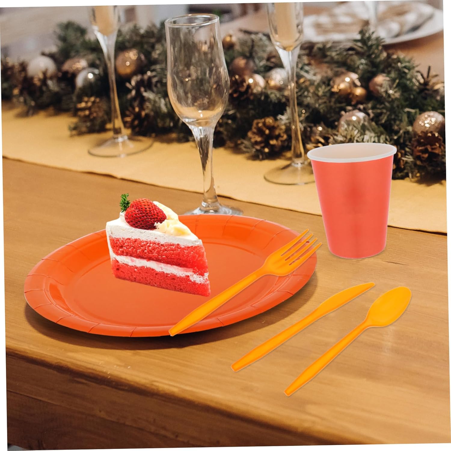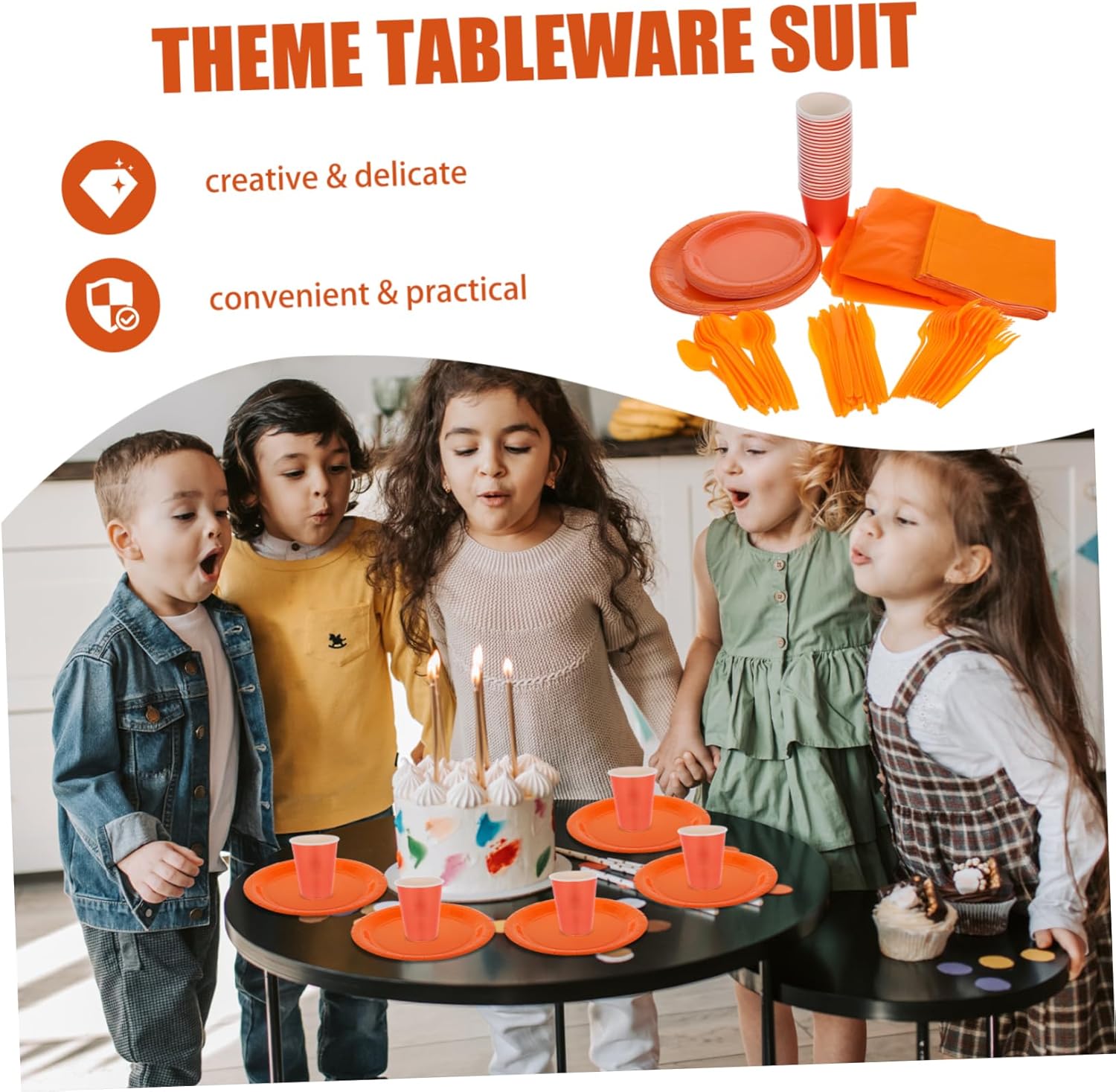 Package List 20 x dishes(7in) 20 x dishes(9in) 20 x napkins 20 x cups 20 x spoons 20 x cutters 20 x forks 1 x tablecloth Characteristics -Size:16.00X3.00X1.50cm/6.29X1.18X0.59in light orange tablecloth -Size:8.50X5.20X5.20cm/3.34X2.04X2.04in orange table cloth rectangle -Size:274.00X137.00X0.10cm/107.68X53.84X0.04in orange table cloth - Enough quantity: tableware that can meet your family party use, very practical and convenient orange tablecloth -Convenient and practical: designed for ease of use, these party supplies are quick to set up - Single use tableware: provide a safe and service for your guest, our tableware will be the -Orange theme: the fresh orange color theme adding of vibrancy and fun to any party setting -Material:PE, paper -Color:Orange -Size:16.00X3.50X1.50cm/6.29X1.38X0.59in -Size:17.00X2.00X0.20cm/6.68X0.79X0.08in -Size: 22.86X22.86X1.50cm/8.98X8.98X0.59in -Size:17.00X17.00X0.10cm/6.68X6.68X0.04in - Theme party supplies: great utensils, they will add a festive atmosphere to the party -Size: 17.00X17.00X1.50cm/6.68X6.68X0.59inGoods Descriptionorange table cloth Are you still looking for party single use tableware? Are you hold a theme party at home? Our product will meet your needs well.orange table cloth rectangle This tableware is made from PE, paper material, safe and you can rest assured to use