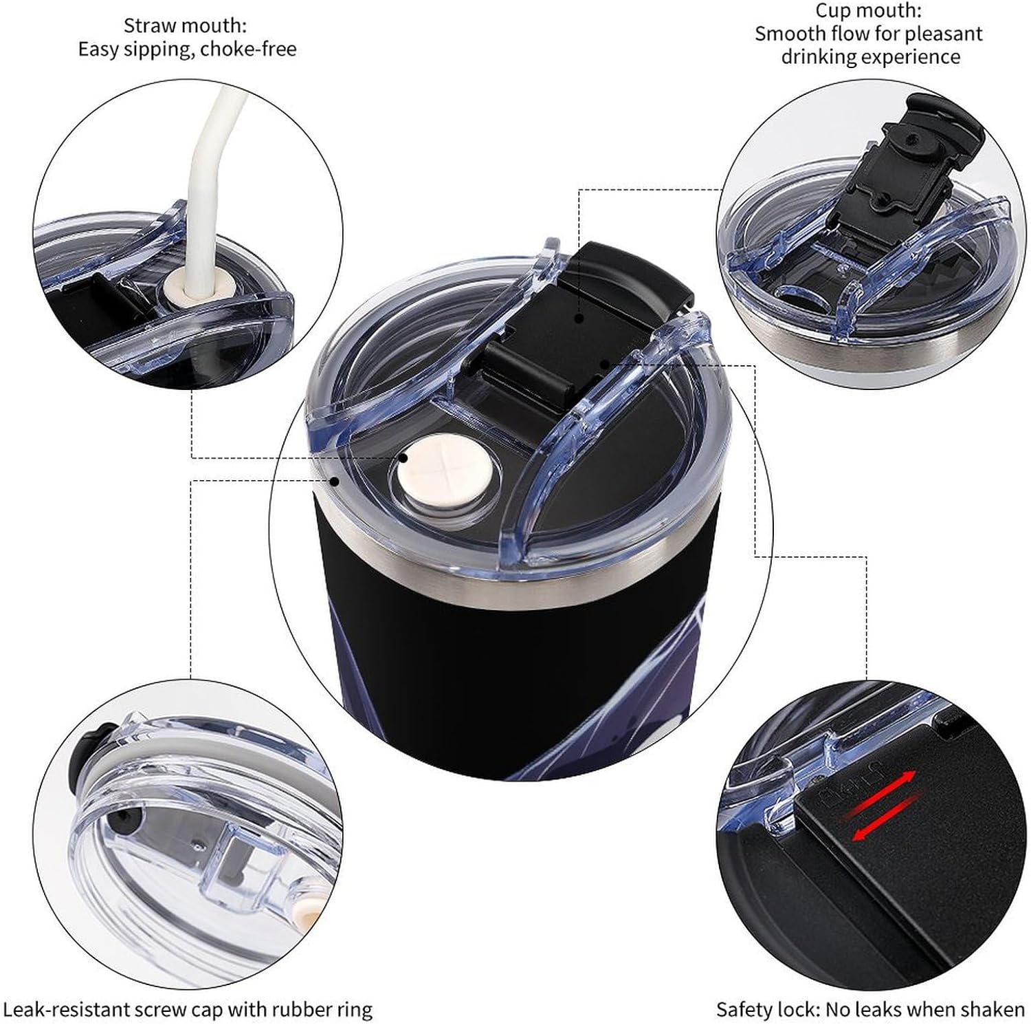 Reusable Double Vacuum Travel Mug Coffee Cup, Upgraded Leak-Proof Lid For Hot and Cold Insulation