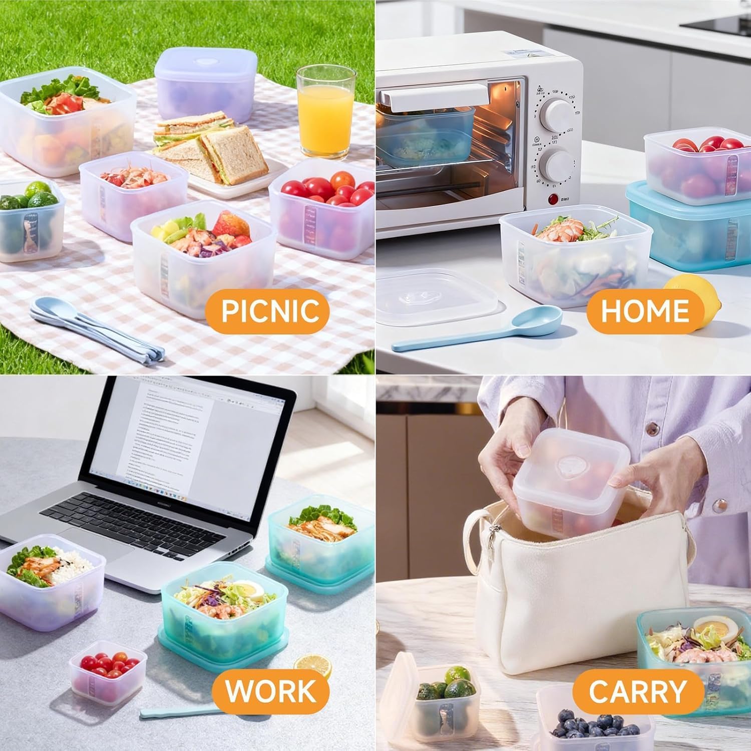 OTB Set of 4 Reusable Silicone Containers Clear, Nesting Leak-free Silicone Food Storage Boxes, BPA Free, Airtight, Dishwasher and Freezer Safe