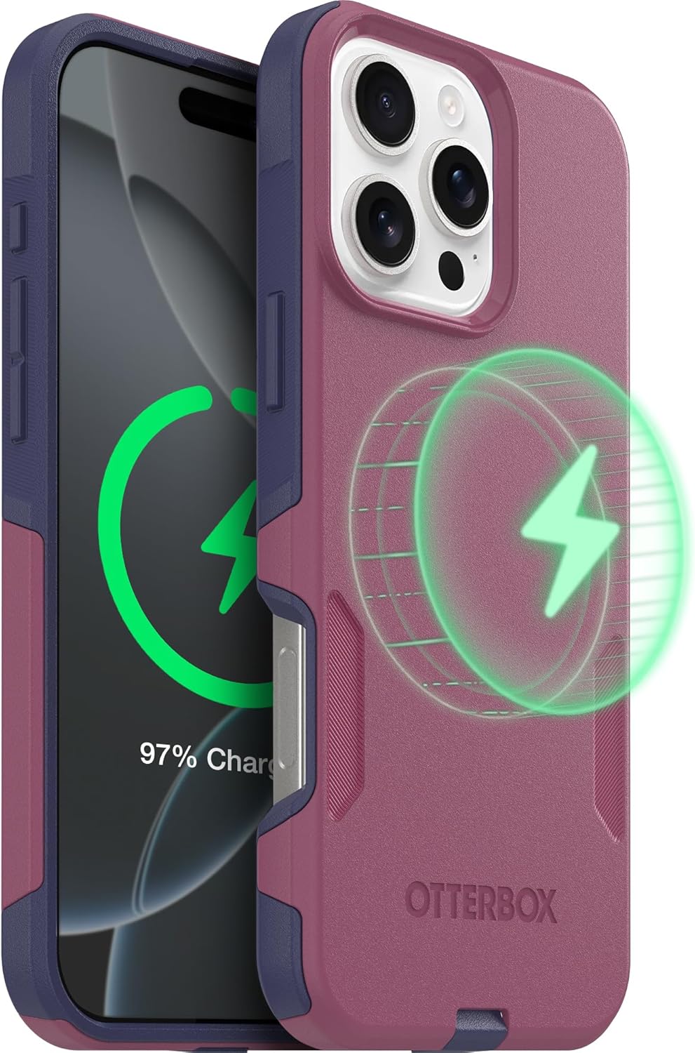 Get moving with Commuter Series for MagSafe, the rugged iPhone 16 Plus case that keeps your phone safe from drops when you’re on the go. Built to beat the daily grind, Commuter Series combines a pocket-friendly profile with robust defenses that have passed 3X military standard drop tests — ideal for everyday adventures. It comes with built-in magnets that snap to MagSafe accessories, opening new doors for charging and using your iPhone. Wherever the day takes you, take Commuter Series, the rugged MagSafe iPhone 16 Plus caseSpecifications:Compatible With:iPhone 16 PlusDrop Height:DROP+ | 3X as many drops as military standard (MIL-STD-810G 516.6)Dimensions:6.59 x 3.30 x 0.51 in | 16.73 x 8.39 x 1.30 cmWeight:0.16 lb | 73.619 gMaterials:Thermoplastic Elastomer slipcoverPolycarbonate LayerMagSafeCase Features:DROP+ | 3X as many drops as military standard (MIL-STD-810G 516.6)Dual-layer design with a rigid outer shell to withstand scrapes and an inner rubber cover to absorb impactPort covers block dust and dirtBumpers around the camera protect against hard hitsScreen lip keeps display hovering safely off surfacesTextured sides for a secure grip you won’t drop easilySlim profile slips easily in and out of pocketsBuilt-in magnets snap firmly to MagSafe chargers and accessoriesWorks with OtterBox screen protectorsCommuter Series contains a minimum of 35% recycled content, consisting of 100% recycled plastics.