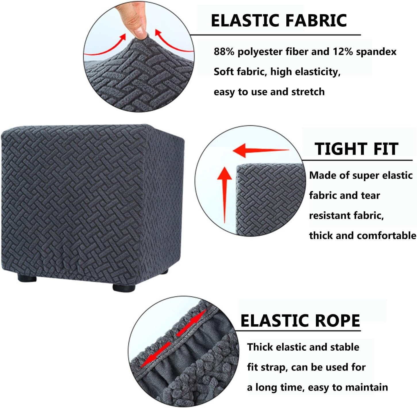 Product Description :1.The stool cover is made of 88% polyester fiber and 12% fabric, which is skin friendly, soft and comfortable.2.This footstool is very elastic and suitable for most footstool sizes. It is both practical and beautiful for decorating your room.3.Easy to connect and remove, easy to put on, the bottom elastic band holds the soft cover in place, providing sufficient protection for the footstool.The packaging includes:1 footstool cover (note: we only sell footstool covers, not footstools!).Kind reminder:1.Due to the fact that product dimensions are measured by hand, there may be measurement errors of 1 to 3cm.2.To ensure that your furniture fits perfectly, please measure your furniture before placing an order