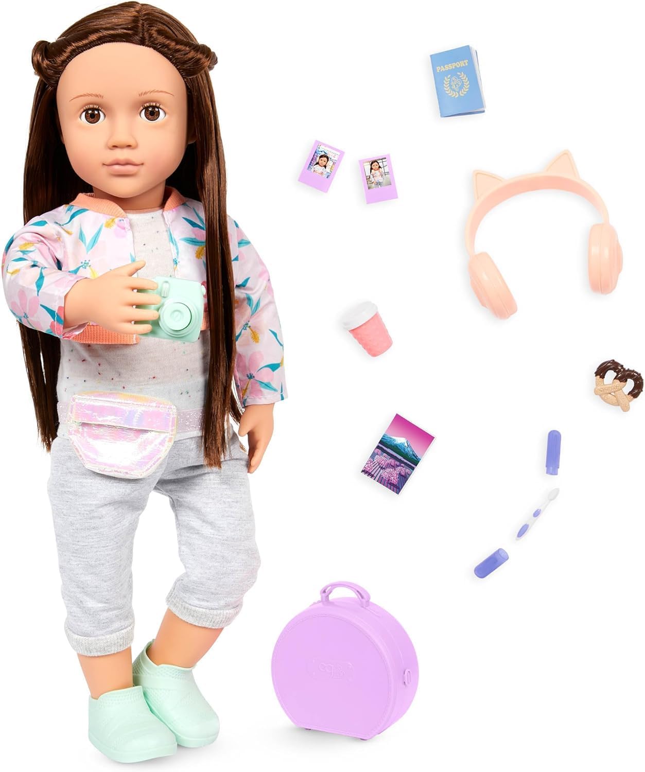 | Additional Features | Bewegliche Augen, Langes Blondes Haar mit Rosa Strähnchen, Umfassendes Zubehör-Set, Kompatibilität mit anderen Our Generation Produkten, Mix-and-Match-Kleidung |