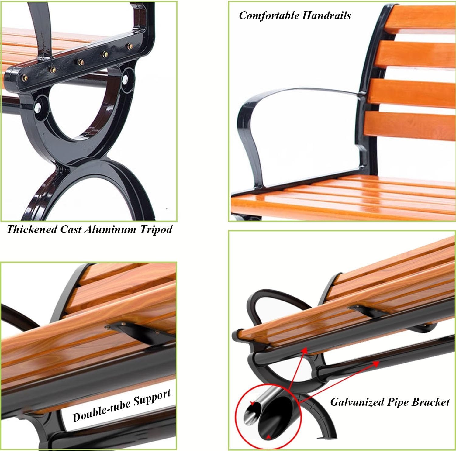 Outdoor garden benches can be placed in your outdoor space at will, decorate your outdoor environment, and create a perfect leisure place for youSpecifications:Name: Outdoor Garden BenchMaterial: Plastic Wood + Cast Aluminum FrameColor: Brown PanelLoad-bearing capacity: 550 poundsSurface: Smooth, no need to worry about scratching clothesArmrest: Beautiful arc, so you can place your hands while sitting, in line with human needsLength: 120cm 150cmHeight from the ground: 40cmWidth: 40cm