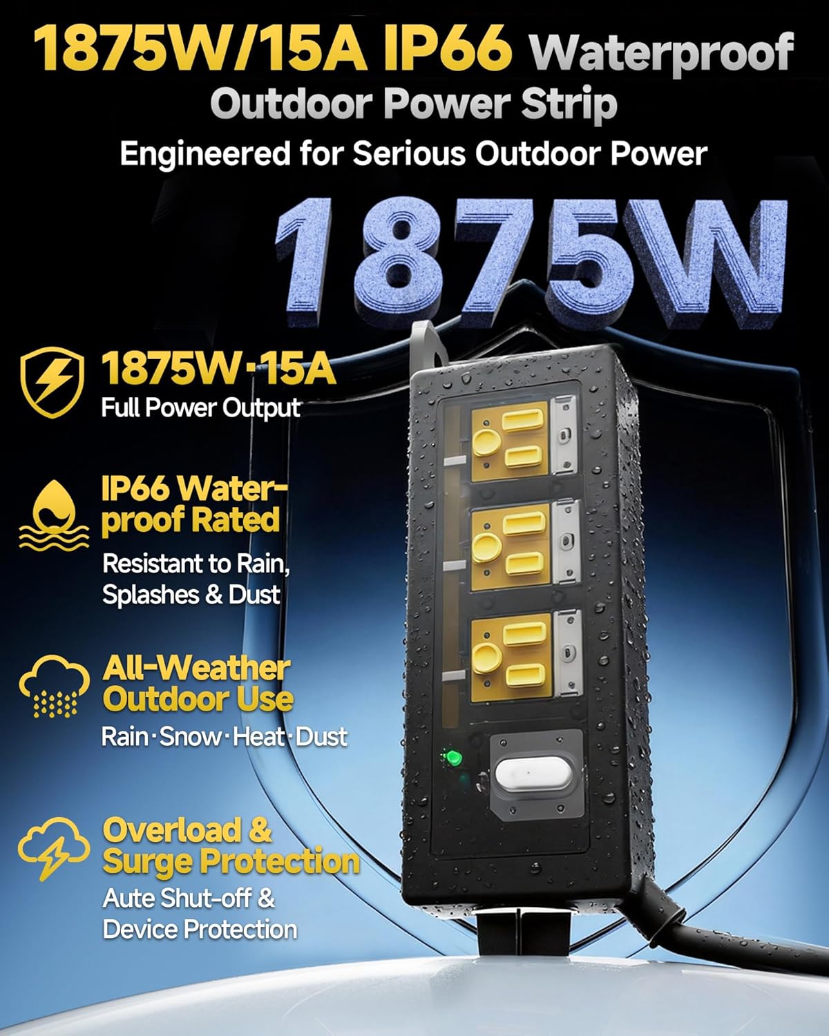 | Other Special Features of the Product | 3 Wide Spaced Outlets, IP66 Waterproof, Scratch Resistant, Surge Protection, Weather Resistant |