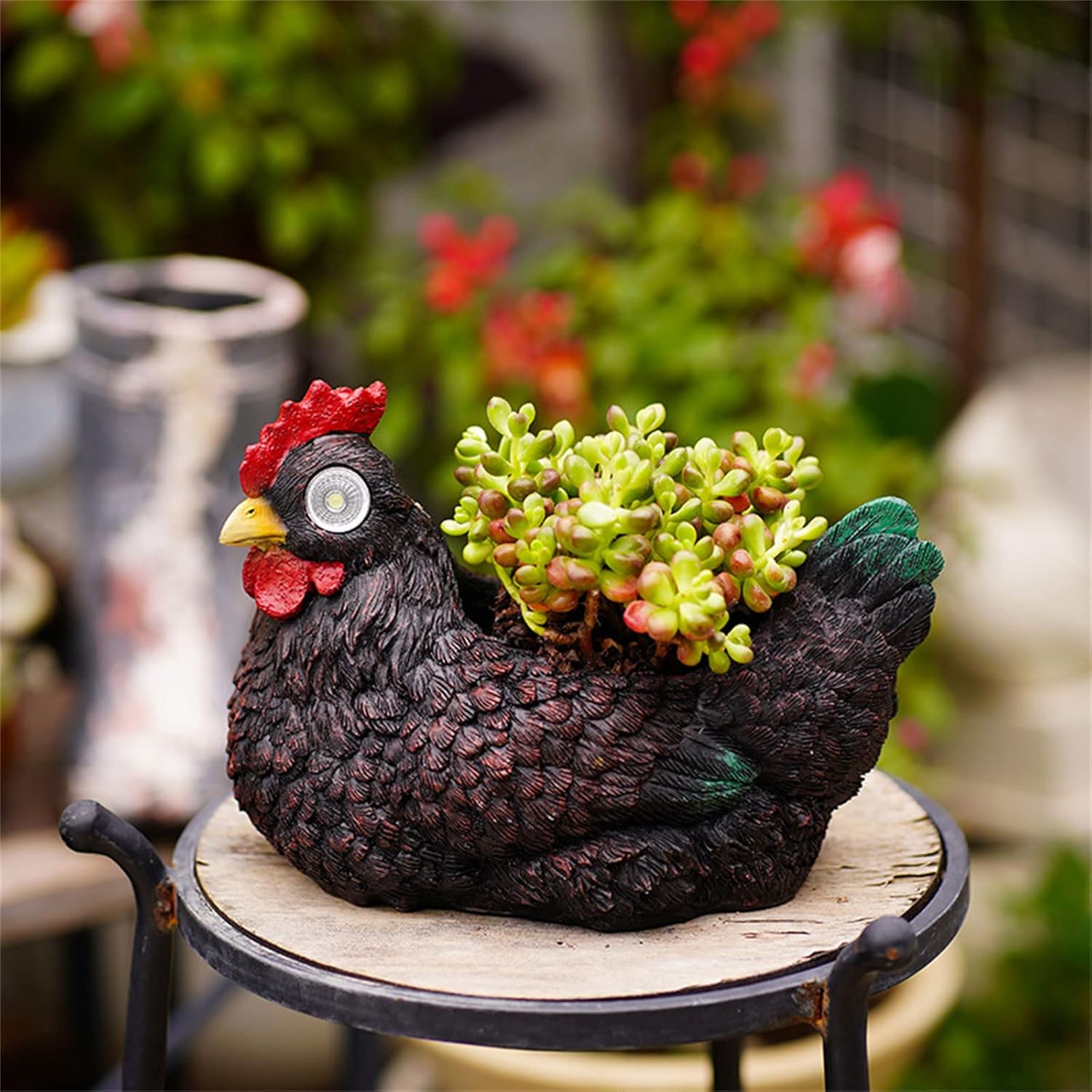 Outdoor Garden Hen Statue Yard Hen Figurine Decoration Funny Chicken Decorations With Solar Light For Yard PatioFeatures:and Illuminate Your Garden: This solar powered statue features a glowing hen, addings a whimsical-touch to your outdoor space Made from resin, this statue is built-to withstand and provide long-lasting enjoyment for Plant Lovers: Whether you're experienced gardener or just starting-out, for anyone who loving plant and wants to add personality to their garden.Versatile Decor: Use this statue as a centerpiece on your patio, or place it in your flower bed to add color and light. It is also great for indoor use, addings nature to any room The solar-powered LED lights are not only energy-efficient, but they also the need for messy wires and plugs.The unique hen is sure to delight all who see it. Specifications:Resin Type Brown Black Size Approx.23x14x16cm 9.05x5.51x6.3inches Package Includes:1x Solar Hen StatueNote:1.Please allow 1-2cm errors due to manual measurement, make sure that you do not mind before you order. 2.Due to the difference between different monitors, the picture may not reflect the actual color of the item.