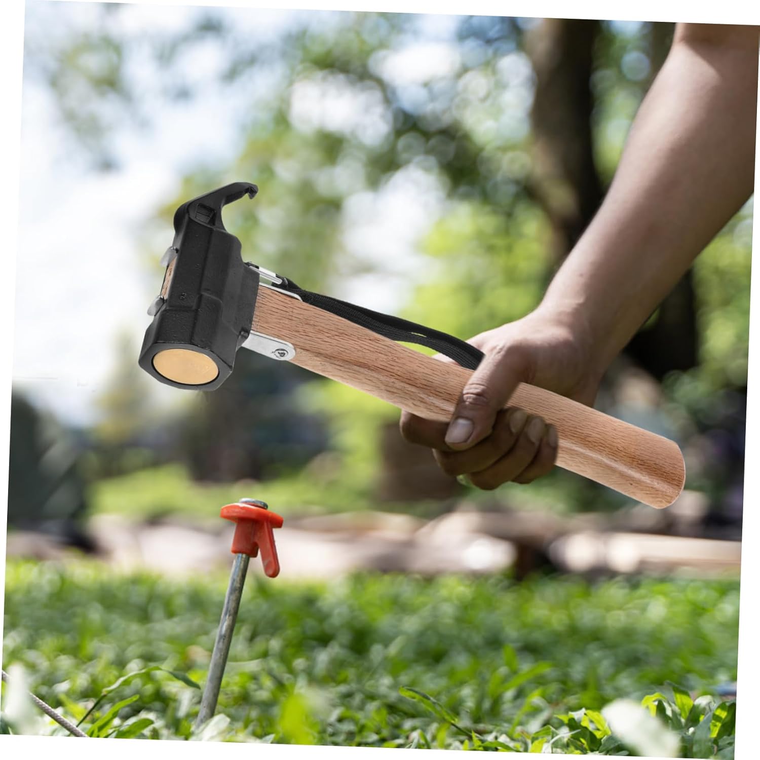 Package List 1 x camping hammer Features -Material:Carbon steel,Wood tent peg hammer -Color:Multi camp hammer -Compact and lightweight: designed to be compact and lightweight, this hammer is easy to carry and use, making it an ideal tool for outdoor adventures puller hammer -Durable metal head: the hammer features a metal head that is durable, ensuring longlasting performance in outdoor conditions tent stake peg puller hammer -Multifunctional design: this camping hammer tool is for various outdoor activities such as camping, hiking, and tent setup, making it a versatile addition to camping tent accessories -Stable hammering force: provides a stable and strong hammering force, ensuring that tent stakes are securely fixed into the ground for a reliable setup tent stakes and hammer -Size:30.50X11.00X2.70cm/11.99X4.32X1.06in camping tools -High strength nail puller: equipped with a nail puller, this tool allows for easy removal of nails from wooden boards and decks, enhancing its utility awning peg hammer lightweight tent hammerGoods Descriptionawning peg hammer lightweight tent hammer Designed for setting up tents and awnings, it features a sturdy copper head and a wooden handle for a comfortable grip.heavy-duty tent hammer The nail puller makes it easy to remove tent stakes from hard ground, ensuring a secure and stable setup for your outdoor shelter.mallet for tent stakes This outdoor multifunctional ground nail hammer is an essential tool for camping and hiking enthusiasts