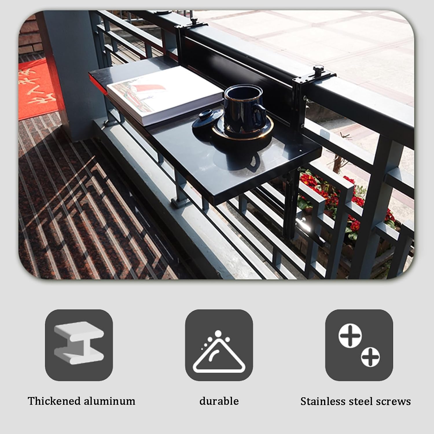 Transform your outdoor space with our versatile balcony bar, designed to seamlessly blend style and functionality. This sturdy railing bar is sun-proof and waterproof, ensuring it withstands harsh weather conditions without compromising its sleek appearance. Whether you're enjoying a morning coffee or hosting a gathering, this balcony bar enhances any small space, bringing the comfort of indoor living to your outdoor environment. Thoughtfully designed, our balcony hanging bar features a high baffle that prevents your items from falling, providing a secure place for drinks, snacks, or decorative plants. The adjustable hook width ensures compatibility with various railing types, making it easy to install and customize according to your needs. When not in use, this compact folding design saves valuable floor space, allowing you to maximize your outdoor area. Assembly is straightforward, and maintenance is a breeze, making this balcony bar a practical addition to any home. With a spacious desktop measuring 60/80cm in length and 30cm in width, it’s perfect for multiple functions, from dining to displaying decor. Crafted from durable metal, it supports a load capacity of 50-80 kg, ensuring stability and reliability for all your outdoor activities. Available in classic white and black colors, this balcony bar complements any aesthetic. Elevate your outdoor experience and enjoy the beauty of nature right from your balcony with our innovative railing bar. For any inquiries, feel free to reach out, and we’ll respond within 24 hours. Transform your balcony into a functional oasis today!