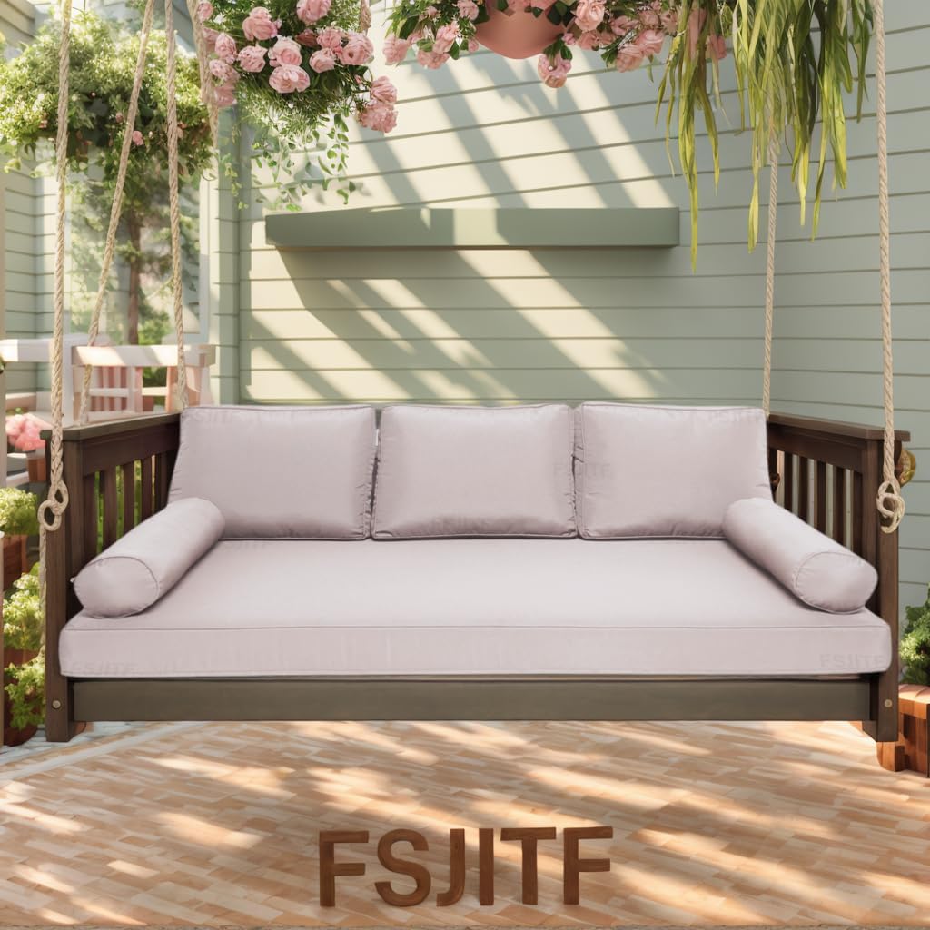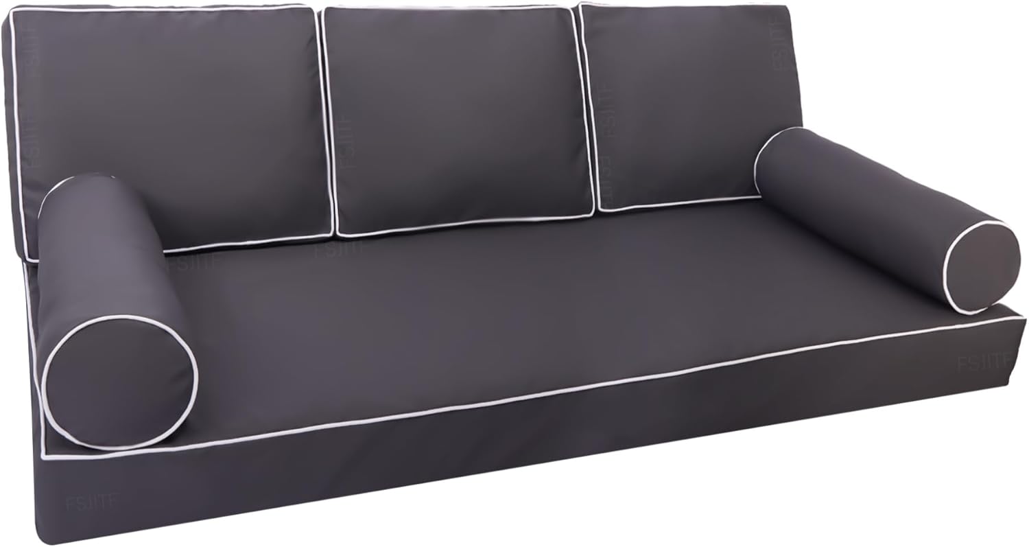 Outdoor Twin daybed Cover,For Outside Patio Porch Swing Mattress Bolster Cushion Pillow Cover Set,Waterproof Fade Resistant Fabrics,Cover Only (Khaki, 6-Piece Set)