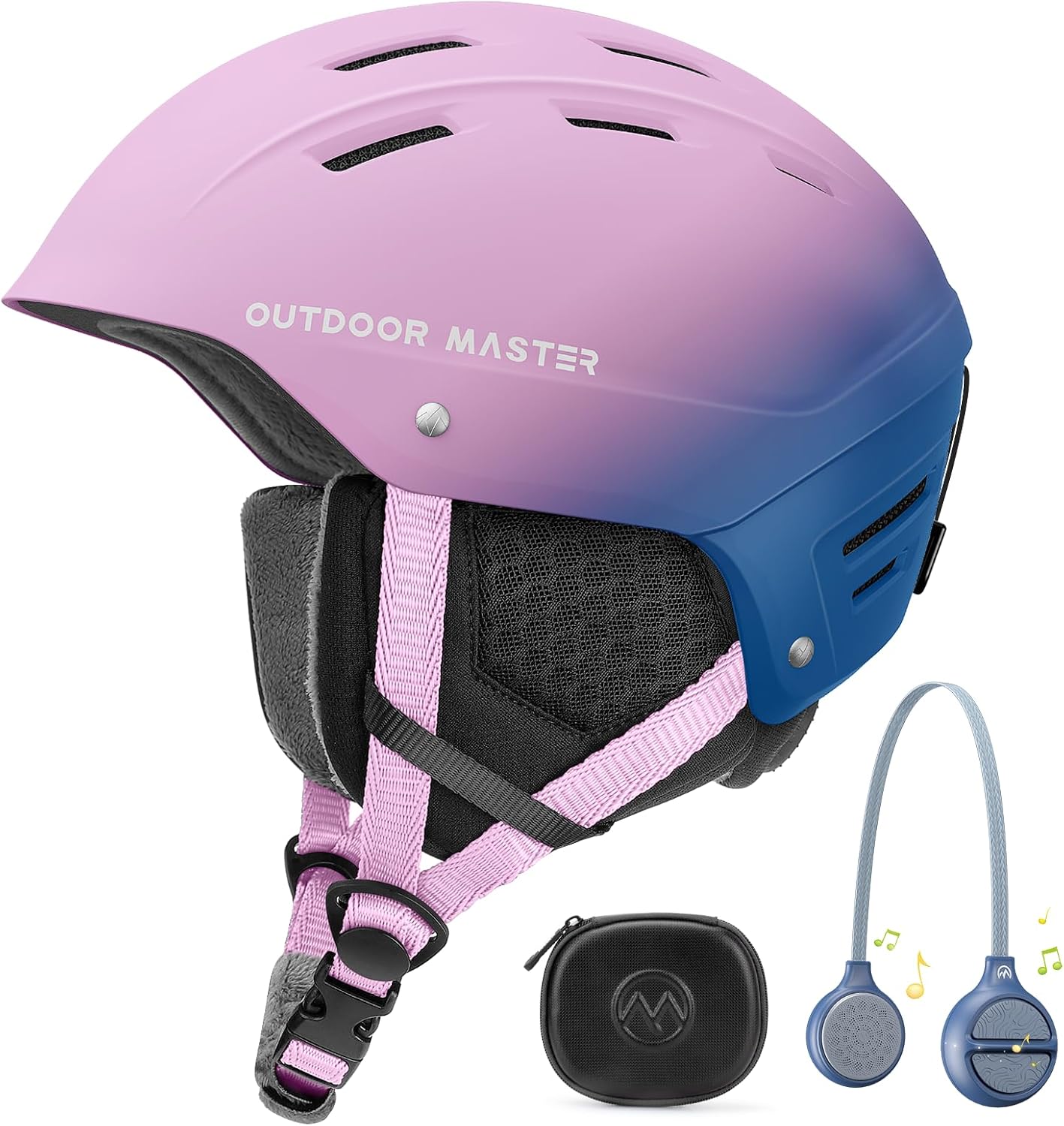 OutdoorMaster Kelvin II Ski Helmet and Wireless Bluetooth Set - Adjustable Fit Snowboard Helmet with Drop-in Headphone - Snow Sports Helmet for Men Women & Youth - Dark Blue, L