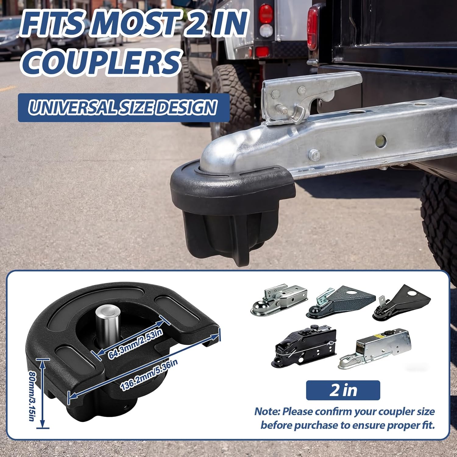 Features: Kind tips: This connector lock is a 2-inch trailer connector. For optimal safety, please ensure it is compatible with your trailer. Reliable performance: Our trailer locks are designed to be robust and durable, able to withstand harsh conditions, ensuring your trailer remains safe year after year. Specifications: Material: steel Color: black Size: about 5.35 x 3.15 inches/ 13.6 x 8 cm Package includes: 1 x Locks Notes: Manual measurement, please allow slight errors on size