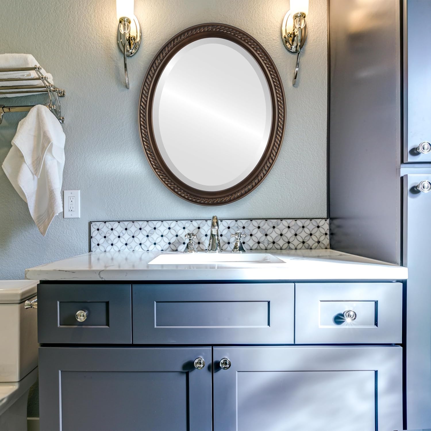 This contempororay looking frame with a 1 3/8" width and is accented with a ornatmental rope decoration running along the top of the frame. The Rubbed Bronze finish features a black frame with subtle streaks of a bronze undertone.