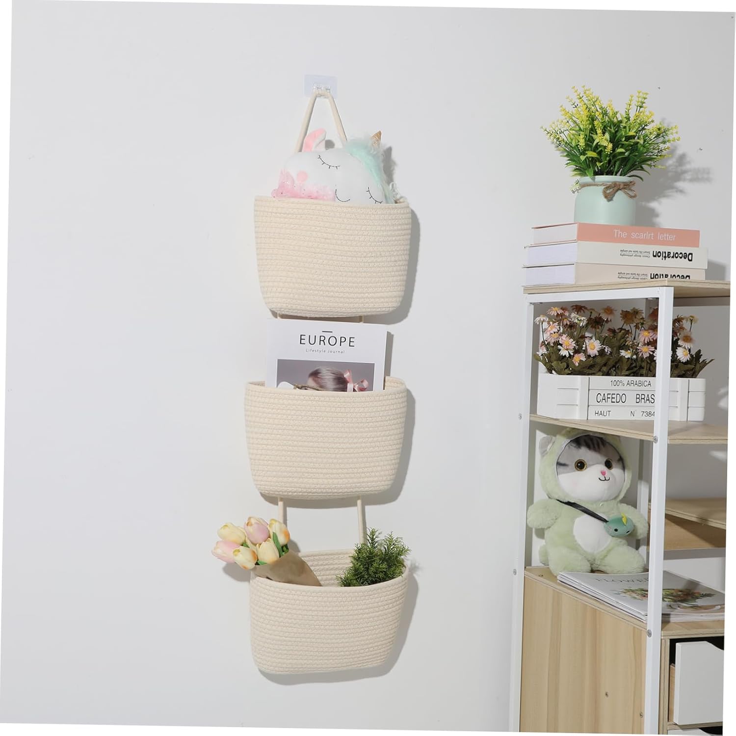 Package List 1 x Hanging Basket Characteristics -Maximizes space: By utilizing vertical space on the door, window or wall, the rope basket helps maximize storage capacity without taking up tabletop space Cotton Rope Storage Basket. -Multi-purpose storage: This wall mount basket is for storing and organizing toiletries items in the kitchen, bathroom, bedroom, and more Organizer Basket. -Material:Cotton Fabric Storage Cubes -Sturdy and lasting: Crafted from sturdy cotton rope, the storage basket has been designed for durability and endurance in everyday use Wall Hanging Basket. -Efficient organization: With 3 layers, the wall hanging basket allows for efficient organization and easy access to items Door Organizer. -Stylish and modern: The wall basket in a solid color adds a touch of modern style to your room and gives it a well-organized look Nursery Storage. -Color:Beige Over The Door Hanging Basket - Size: 108.00X30.00X20.00cm/42.44X11.79X7.86in Storage BinsGoods InformationHanging Baskets For Organizing It only requires a hanger hook.Cotton Rope Storage Basket Looking for a stylish and functional storage holder for your home? Look no further than our Hanging Rope Basket! This basket is constructed with cotton rope and features a sturdy frame, suitable for organizing towels, toiletries, or plants.Organizer Basket The basket is easy to install