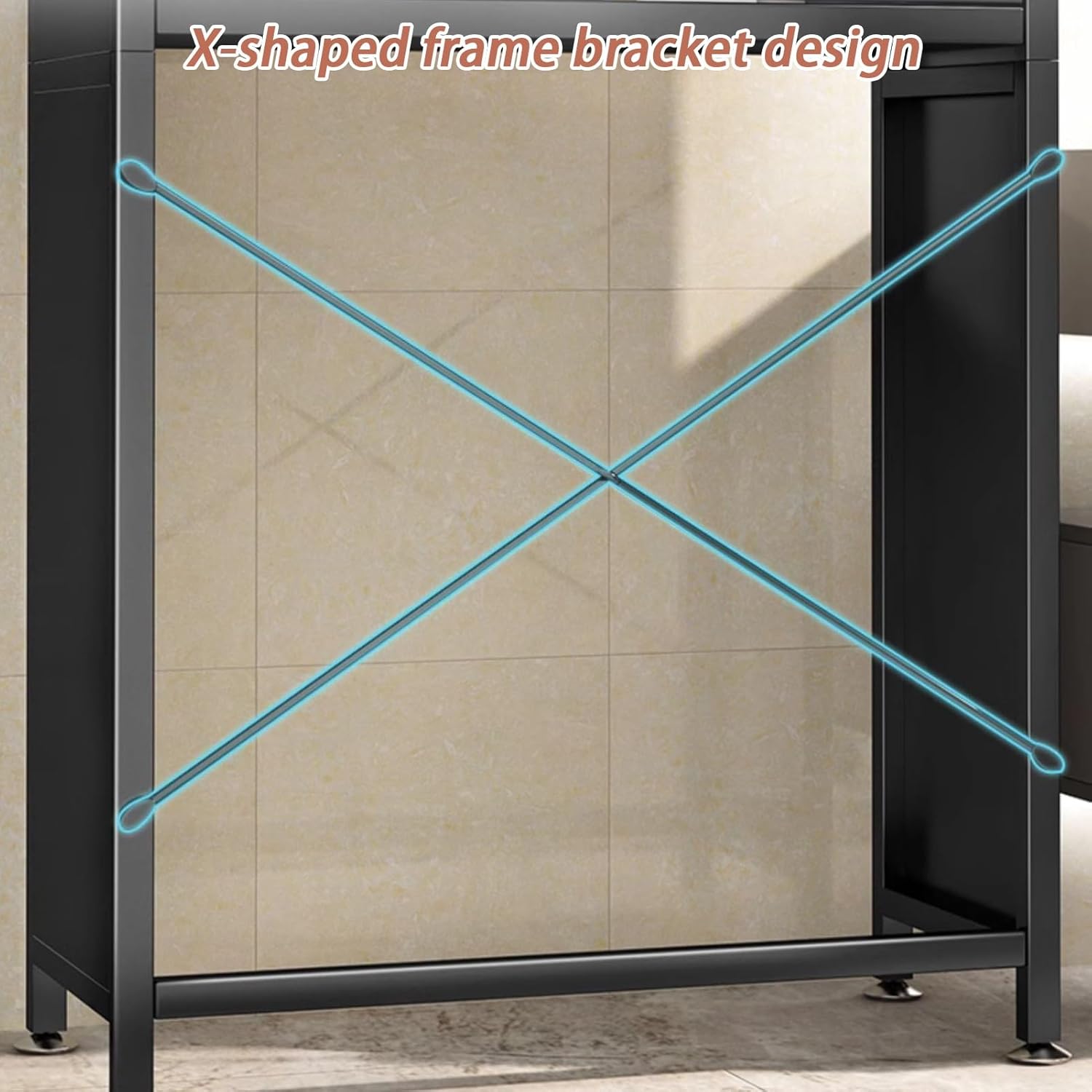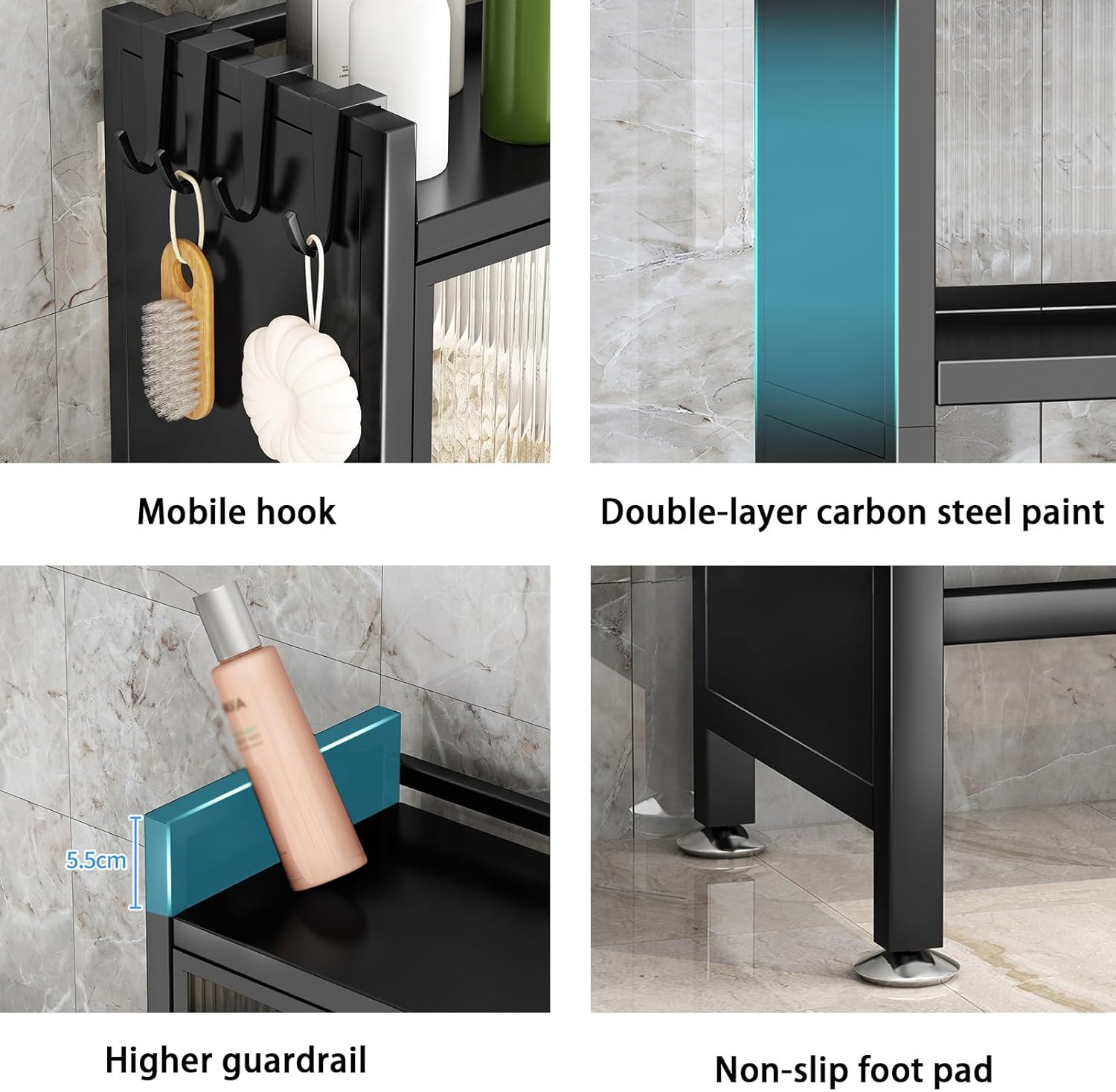 The YUGXTH over toilet storage unit makes full use of the wall space above the toilet without taking up too much floor space.Strong load-bearing capacity, no deformation after being squeezed by heavy objectsAcrylic door panel, flip-up cabinet door designThe cabinet door flap is suspended, so it does not block your hands when you open the door to take thingsX-shaped frame reinforced bracket design, no shaking when taking thingsHigher guardrails to effectively prevent items from fallingAnti-slip foot pads are stable and do not shakeProduct parameters:Product name: bathroom storage rack, toilet storage rack, bathroom storage rack, toilet storage rackMaterial: metal + acrylicNumber of layers: 2 layersLength: 50cm/19.6inWidth: 25cm/9.8inHeight: 161cm/63.3inColor: blackInstallation method: floor-standing typeFunction: adjustable foot padApplicable scenarios: bathroom, toiletPackaging includes:Toilet Shelf*1Please note:1. While we display the most accurate color possible, there is likely tobe variations in color due to differences in computer monitors.2. Manual measurement, the size of the product there will be 1-3 cm error.