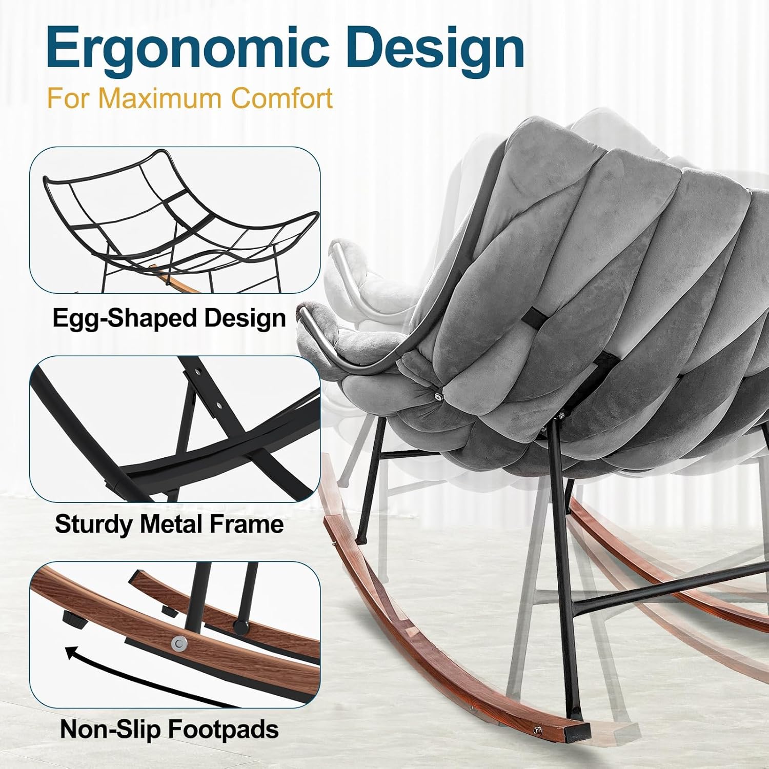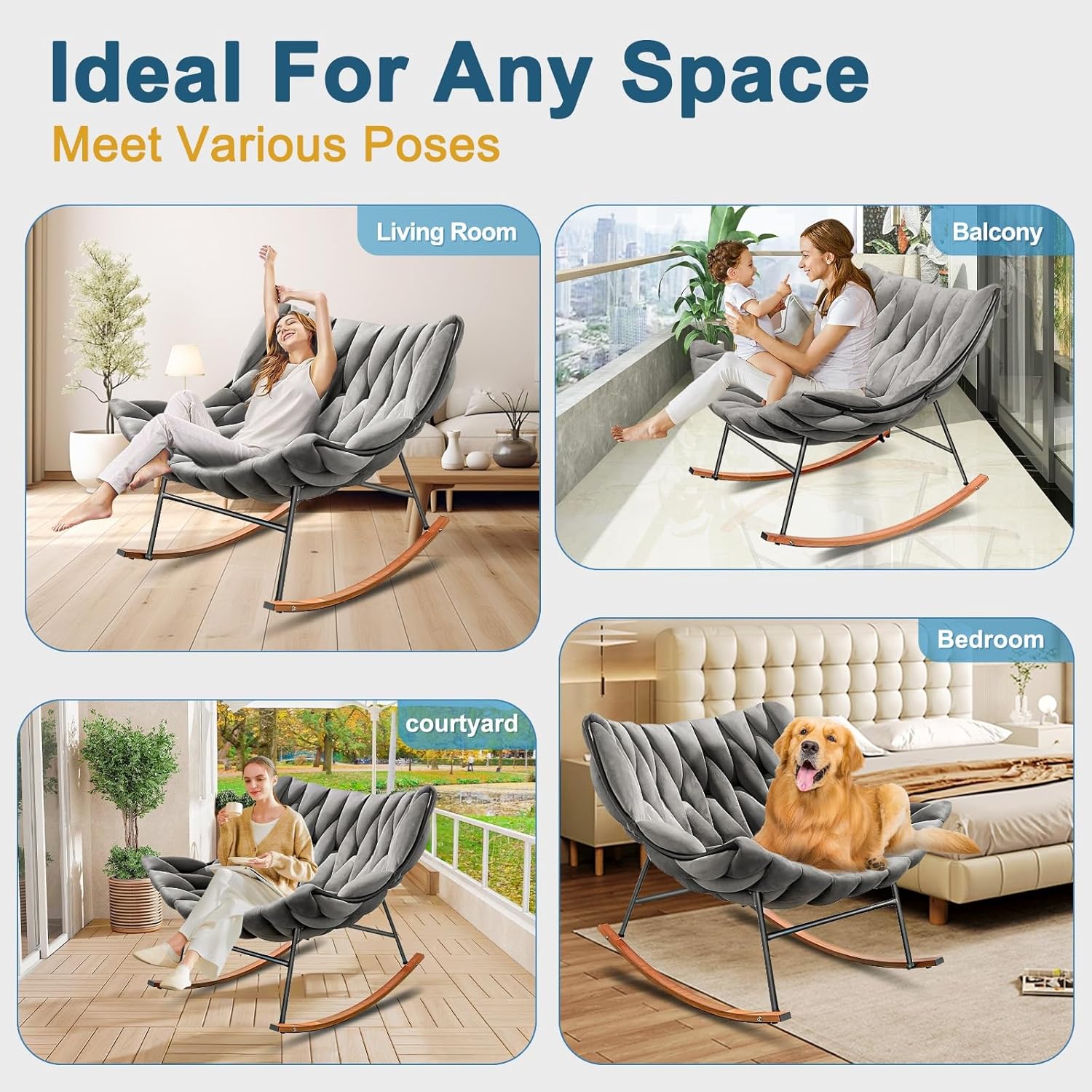Oversized Papasan Recliner Chair, Indoor Egg Royal Rattan Rocking Chair for Front Porch Lounge Lawn Bedroom Living Room Garden lawnSpecificationProduct Name: rocking chair indoorProduct Category: Papasan Rocker ChairFeatures: sturdy, comfortable, wear-resistant, waterproof, sun-proof, UV-proofFabric: alloy, polyesterFilling: pp cottonpattern: plainColor: Gray Size: 42x35x35 inchesStyle: modern and simplePackage Includes: royal rocking chairElevate your relaxation experience with our premium papasan chair. This outdoor rocking chair is crafted to withstand the elements while offering unparalleled comfort. Its saucer - shaped design, also known as a papasan rocker chair or royal rocking chair, provides a cozy nook for you to unwind after a long day. Immerse in ultimate comfort with our high - quality egg chair, which doubles as a lazy chair. This versatile piece can be used both indoors and outdoors, making it an ideal outdoor papasan. Whether you're sitting in a folding chair or a swivel chair, its softness will transform your seating into a luxurious experience.