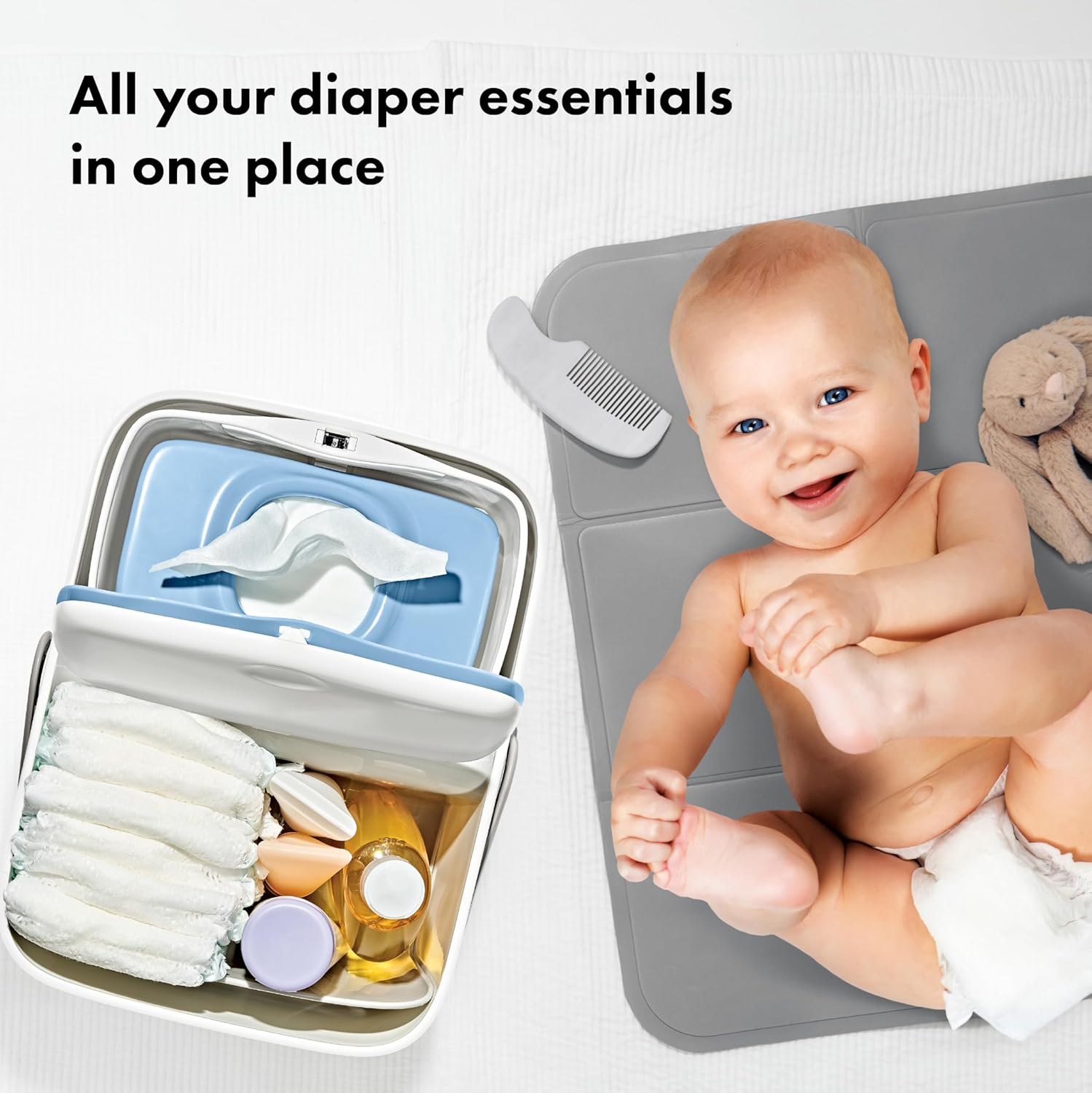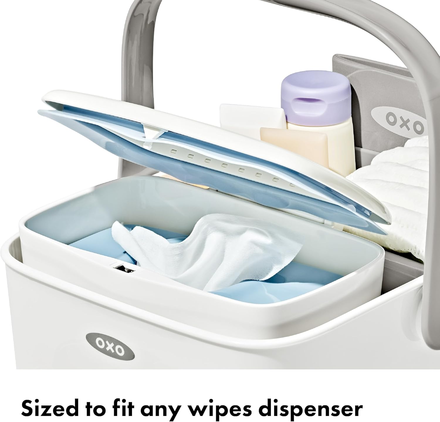 Never be caught without something you need during a diaper change. The OXO Tot Diaper Caddy with Changing Mat is a convenient way to store everything from diapers and ointments to wipes¬ and burp cloths. A generously sized, comfortable folding Mat fits right inside, so you can change baby anytime, anywhere. The wipes compartment holds a wide variety of wipes dispensers, and the drawer holds even more accessories. The locking handle makes it easy to grab and go, meaning you’ll be ready for any diaper emergency.