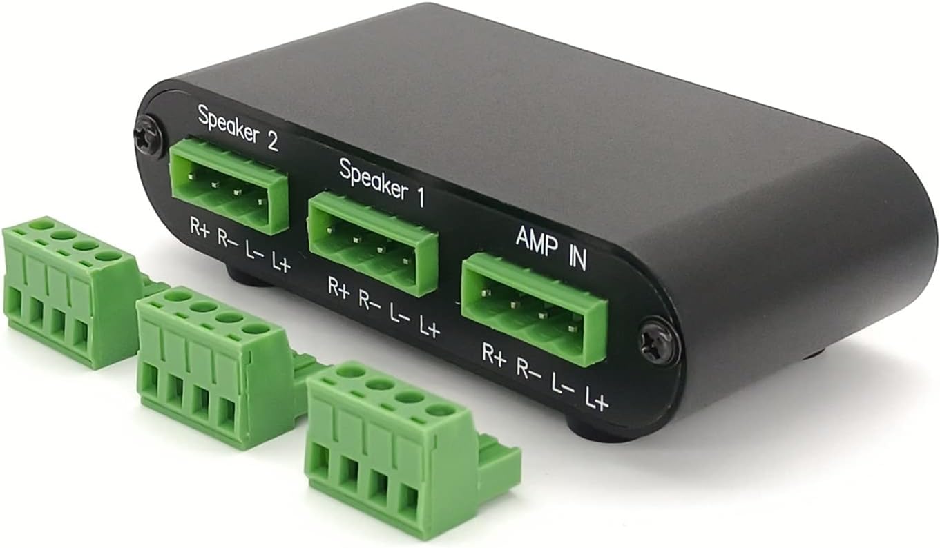 Multichannel speaker switcher controls up to 2 pairs of speakers that connected to a stereo amplifier at the same time or in combination.
