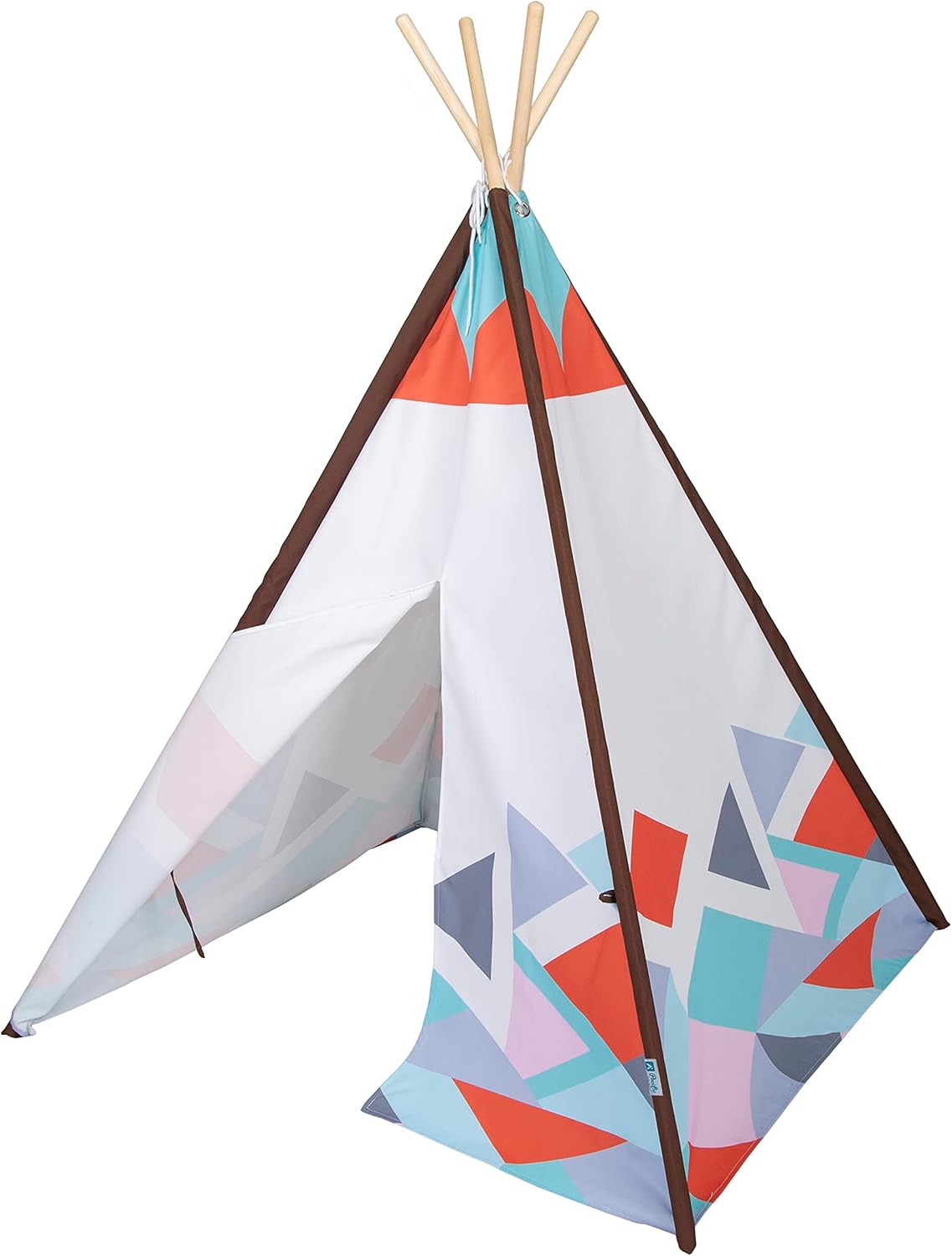 Our Dots of Fun Teepee is loads of fun! Every child loves having a cozy space of their own for crafts, reading, screentime, or just simple imaginative play, this teepee is the perfect place! The solid wood poles, high-quality polyester, and double-stitched seams ensure years of use while the mesh window and easy to close door ensure hours of comfort and fun. If you want to take it with you on the go, just fold it up and put it in its sturdy carry bag for convenient travel and storage. Size: 45" x 45" x 64" high.