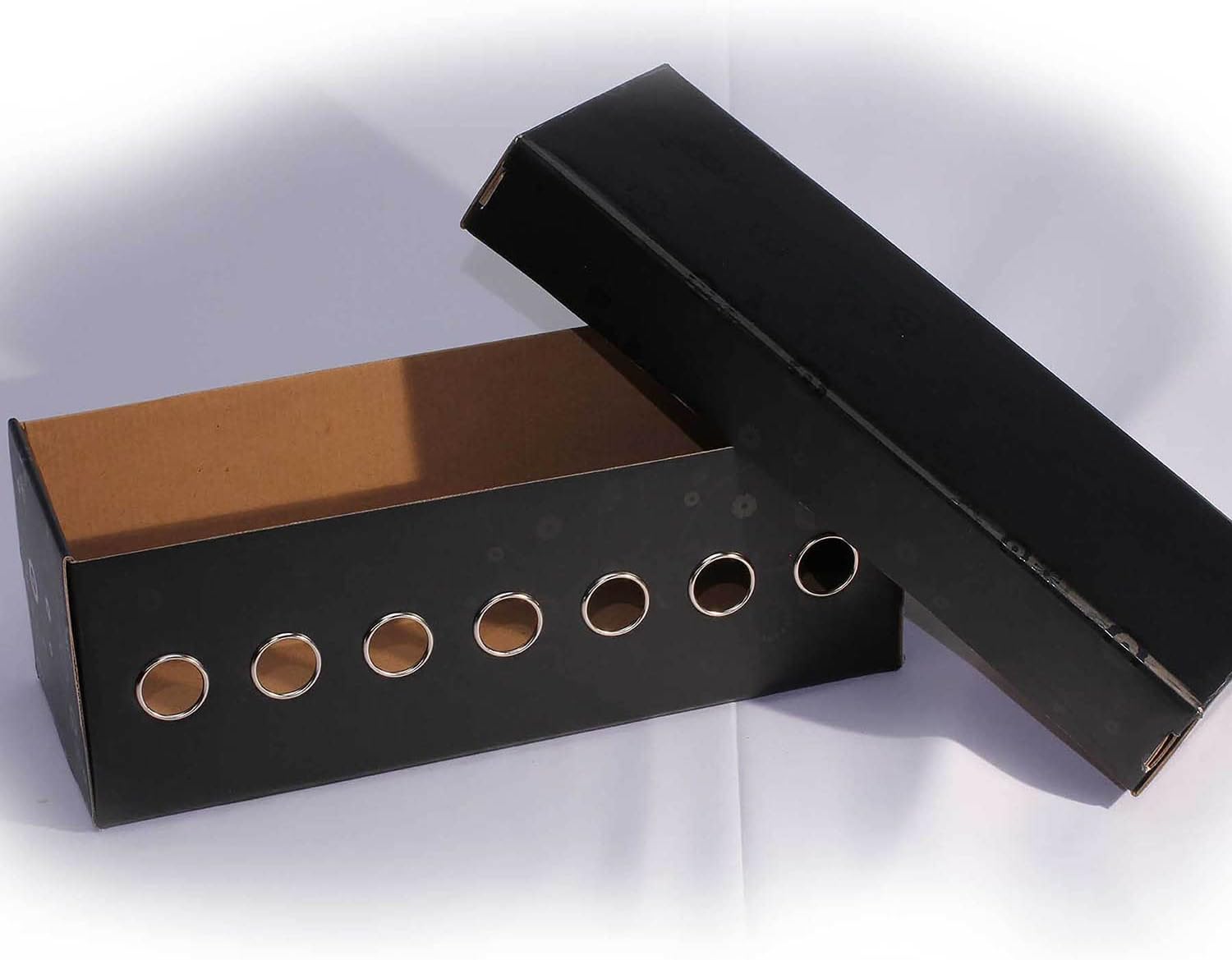 Maintain organization, travel in style, and store your crafting ribbons elegantly with these ribbon dispenser boxes. Each box features a removable lid and black floral design. Each box contains (7) dispenser holes for convenient decorating Dimensions: 5.25"H x 13"W x 5"D. Material(s): cardboard/metal Pack includes 4 of the ribbon box shown Note: box only - ribbons shown are not included