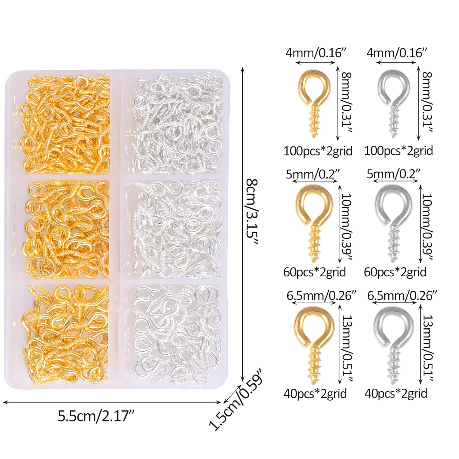 Pack of 400 eyelet screws, screw eyelets for jewellery making, crafts and bead pendants, 3 sizes, mini metal eyelets with screw cap