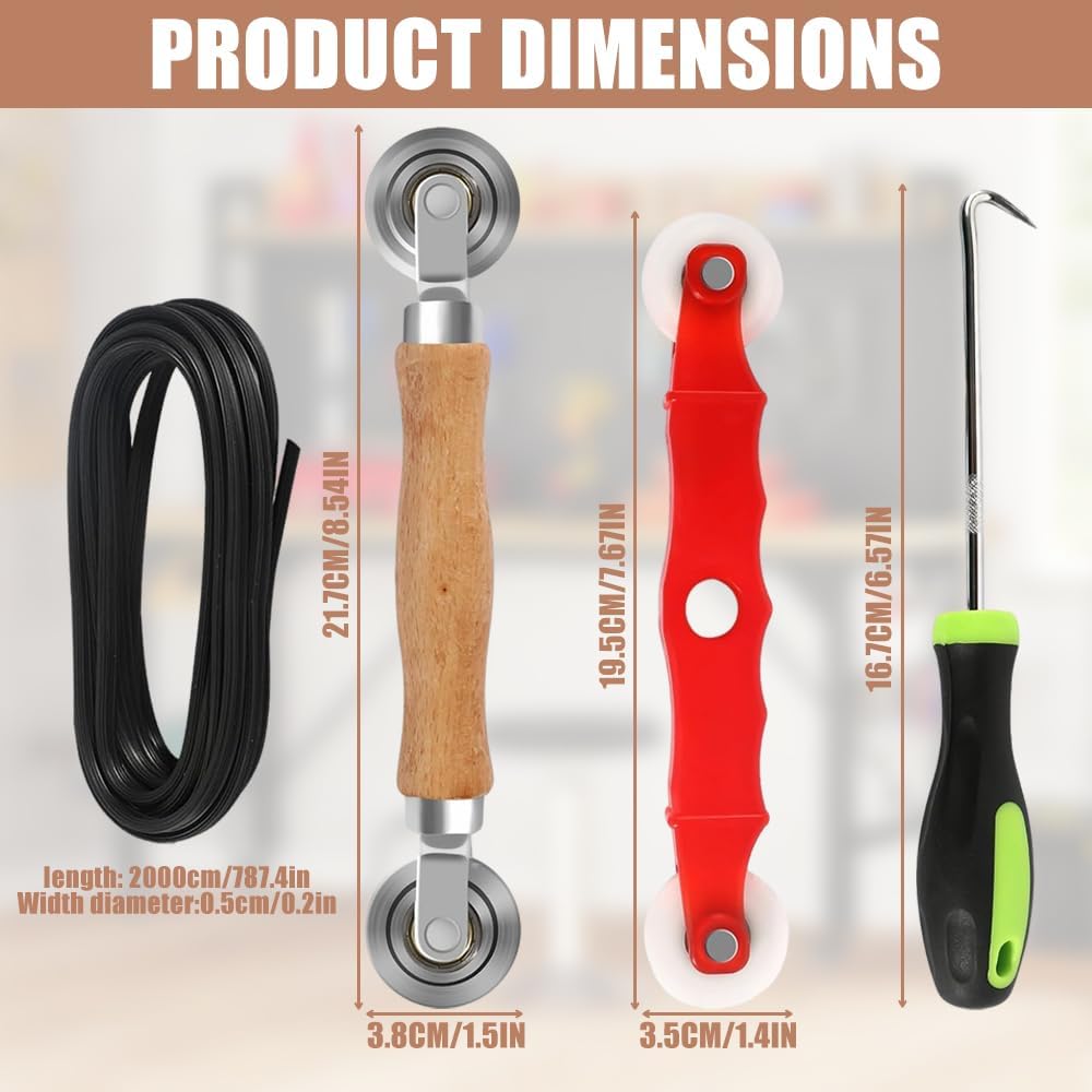 - The handles made of wood and plastic of the install fly screen replacement part are ergonomically shaped and fit comfortably in the hand. The roller can be easily rotated. The hook allows you to quickly remove old sealing strips and save you time. - When using install fly screen replacement part, the roll can be easily aligned with the sealing tape and rolls slowly, which allows the tape to be easily pushed into the gap. The steel wheel of the tool runs very smoothly. The hook is sharp enough to easily open even old and worn sealing strips. Product specifications: Product name: tool retractor. Item Package Weight:450g Tool retractor roller box contents: 1 x wooden handle with metal wheel. 1 x plastic pressure roller. 1 x release hook. 2 x pressure strips. Note: 1. Please allow 1-2cm error due to manual measurement. Thank you for your understanding. 2. Due to different screen resolutions, the product color may be slightly different. We are convinced that you will be satisfied with your purchase. If there is still damage, please contact us directly. We will help you as soon as possible.